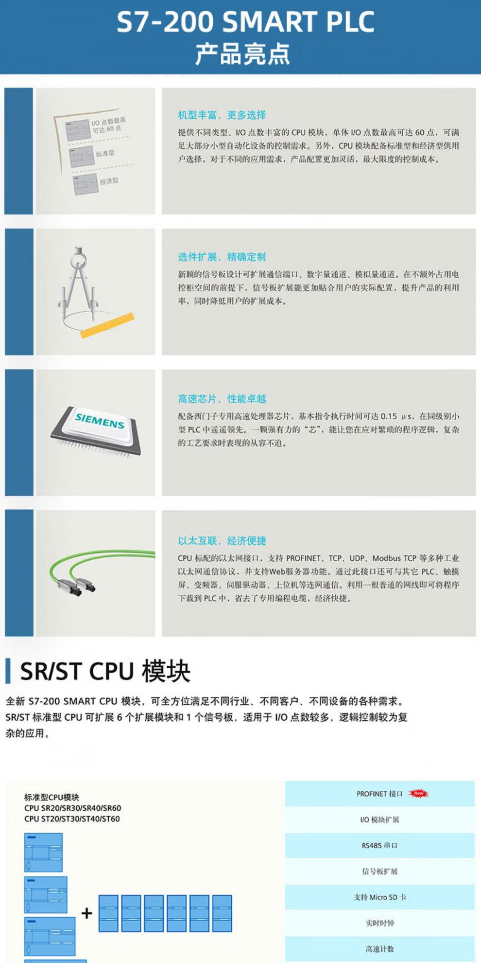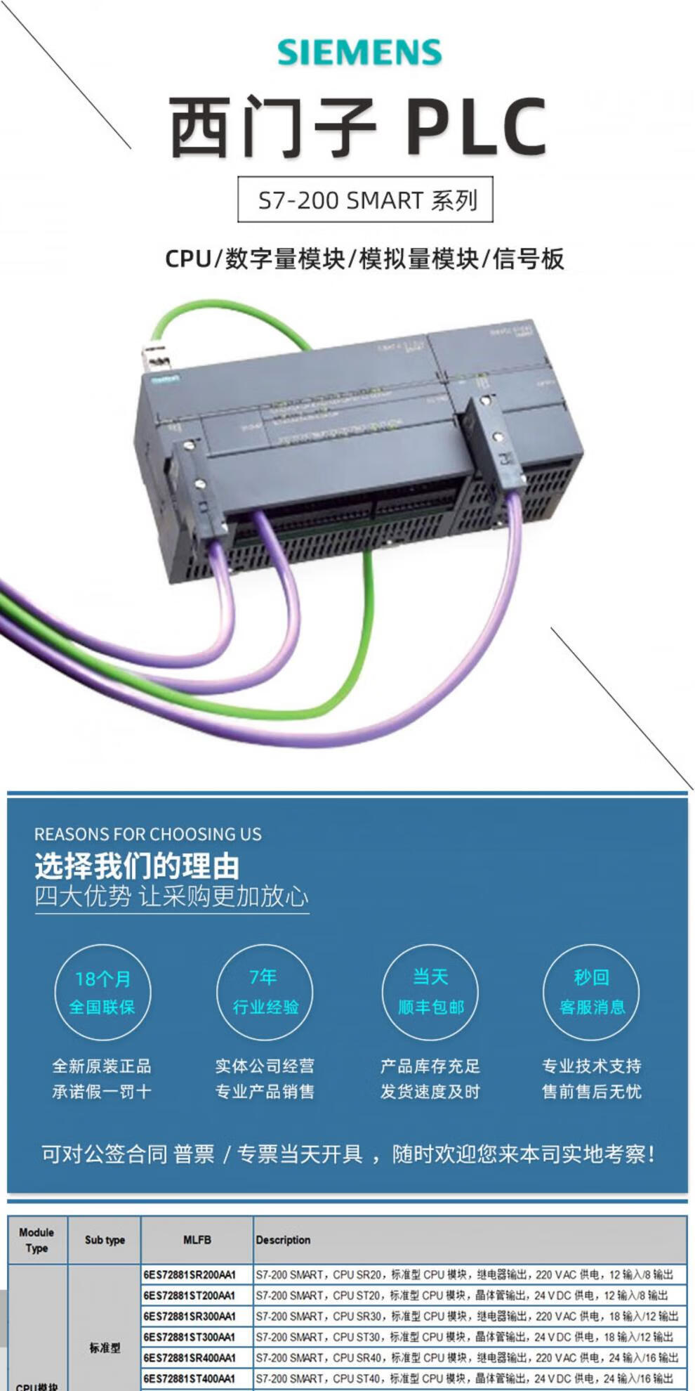 ПЛК S7-200SMART SR20ST20SR30ST30SR40ST40SR60ST60 V3.0 6ES72881ST600AA2 двойной сетевой порт