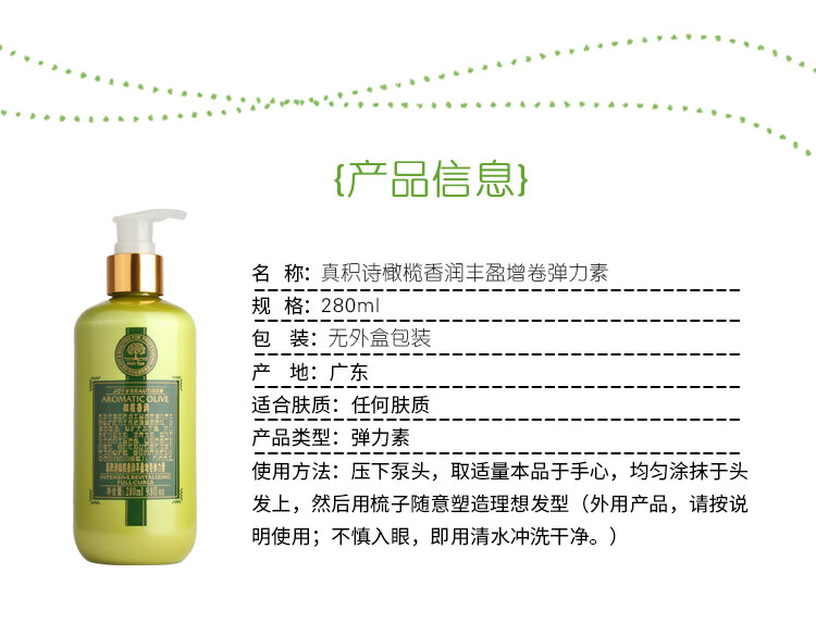 OthersZhenjishi Curly Hair Moisturizing Styling Long-lasting Curl Care Essence Women's Anti-frizz Olive Elastin Curl Protector Emerald Green Zhenjishi Olive Fragrant Fragrance Type 280ml