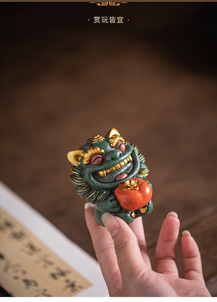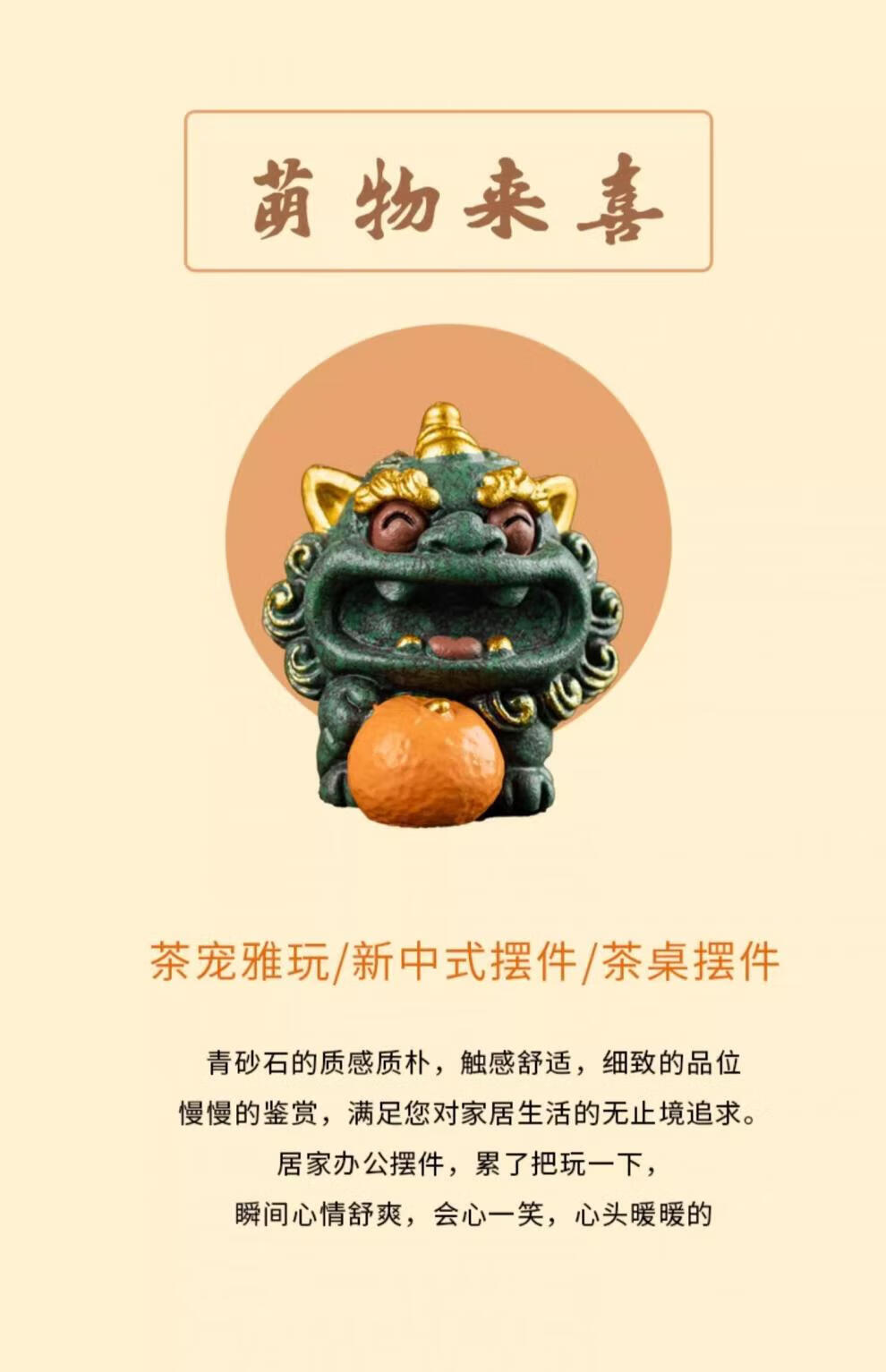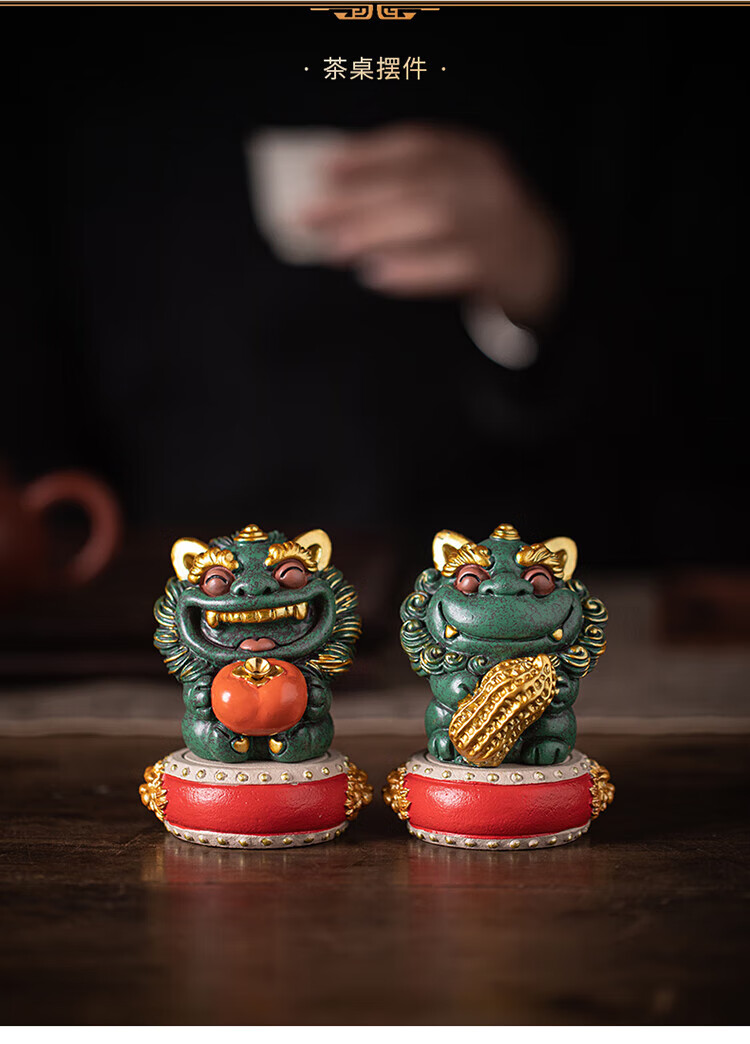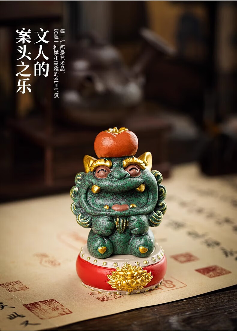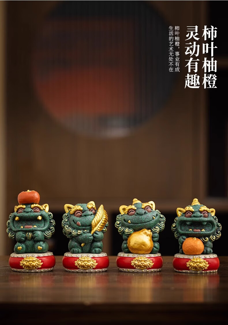 MPPMCK Japan imported quality lion tea pet ornaments with base tea table tea table tea play cute healing gift box 06_Colorful gold persimmon leaf pomelo orange + base (Wanli Shanhe