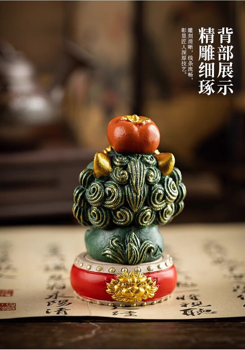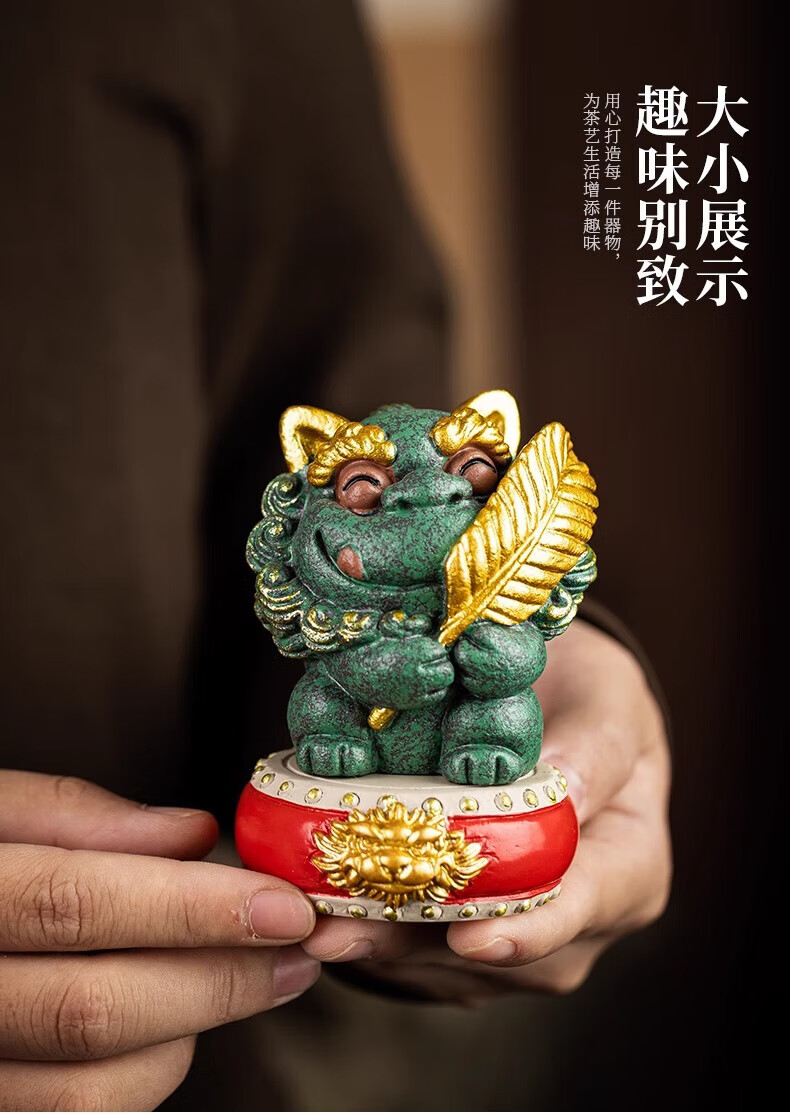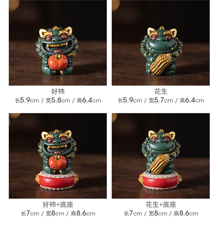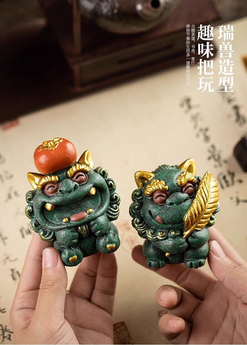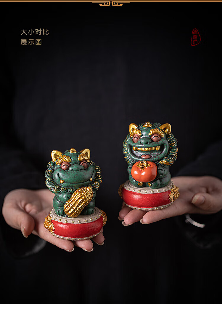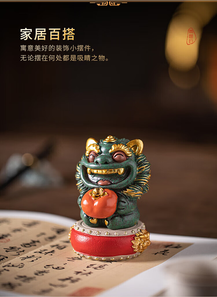 MPPMCK Japan imported quality lion tea pet ornaments with base tea table tea table tea play cute healing gift box 06_Colorful gold persimmon leaf pomelo orange + base (Wanli Shanhe