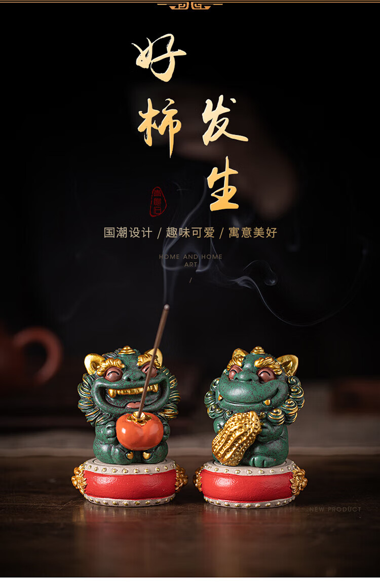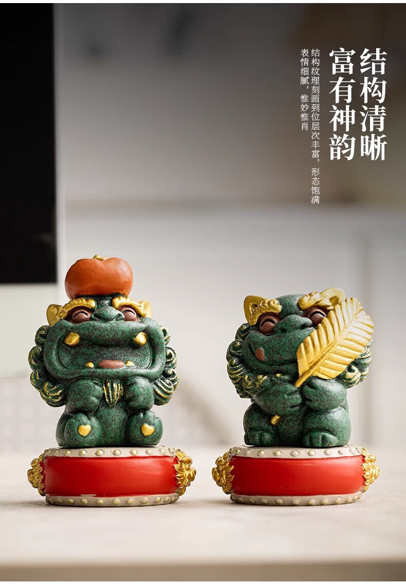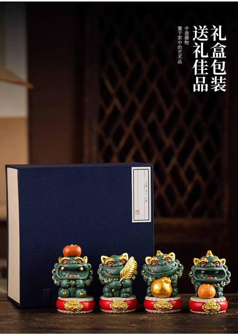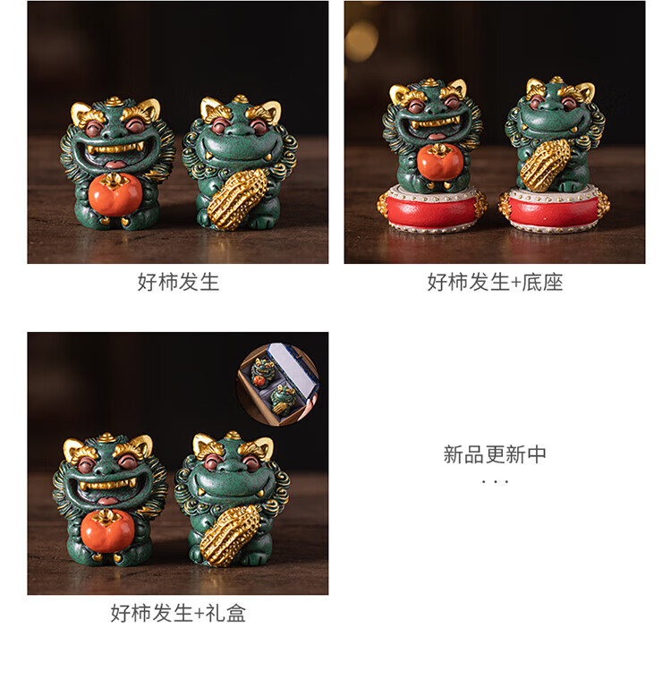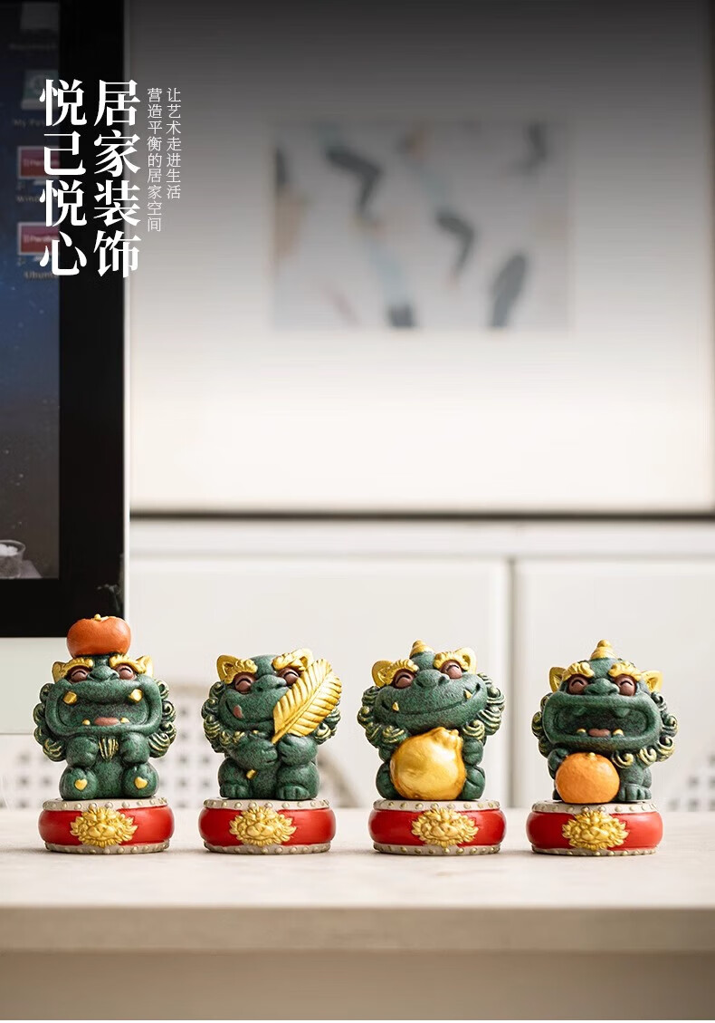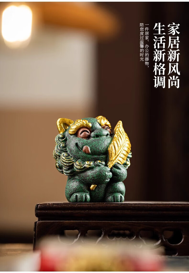 MPPMCK Japan imported quality lion tea pet ornaments with base tea table tea table tea play cute healing gift box 06_Colorful gold persimmon leaf pomelo orange + base (Wanli Shanhe