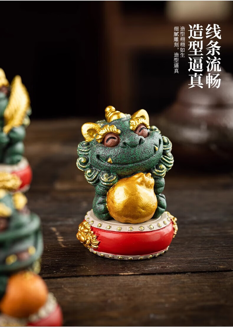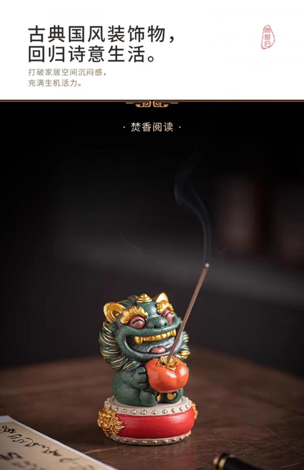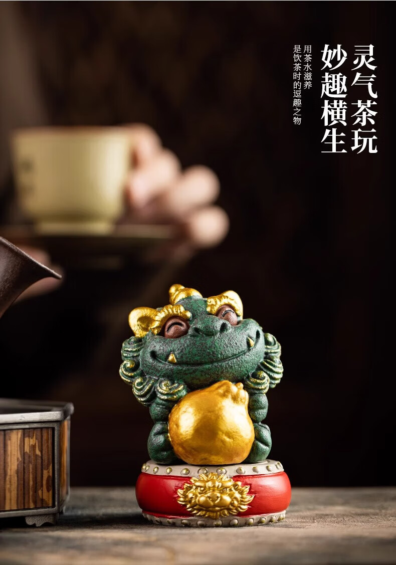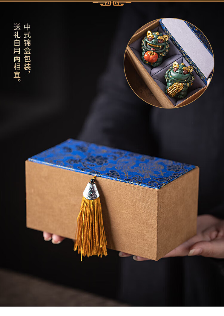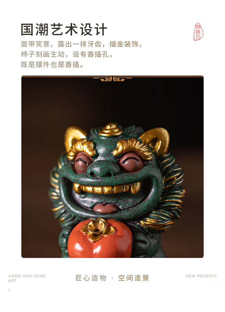 MPPMCK Japan imported quality lion tea pet ornaments with base tea table tea table tea play cute healing gift box 06_Colorful gold persimmon leaf pomelo orange + base (Wanli Shanhe