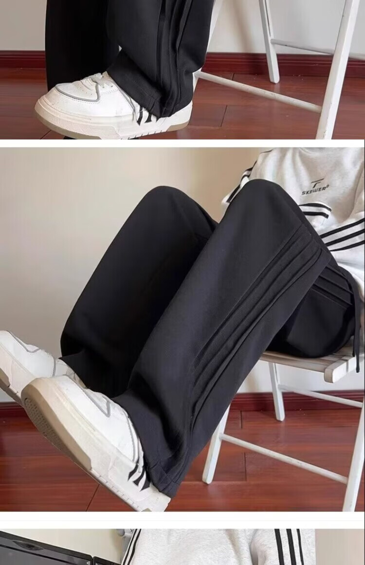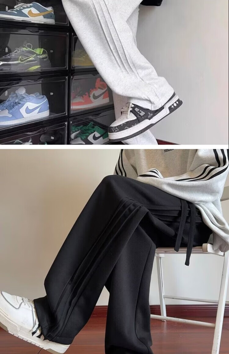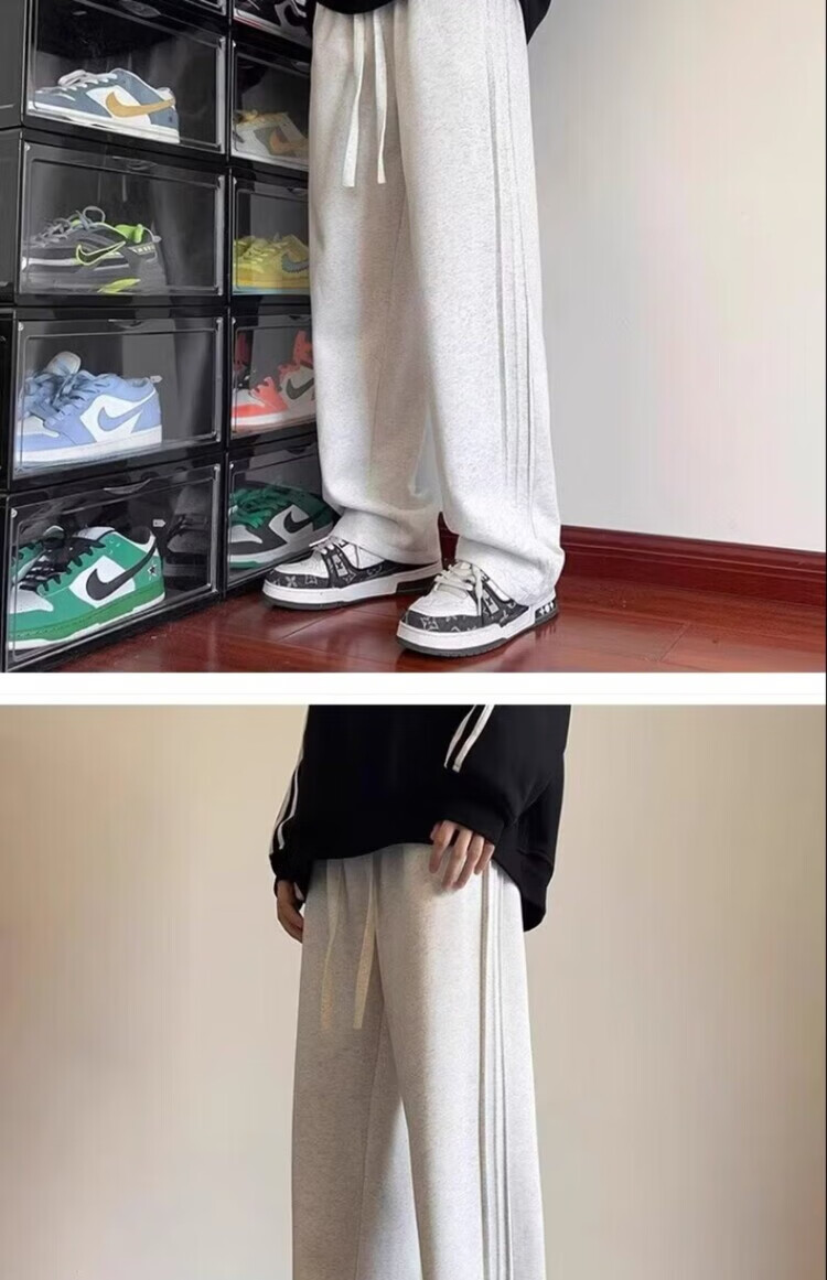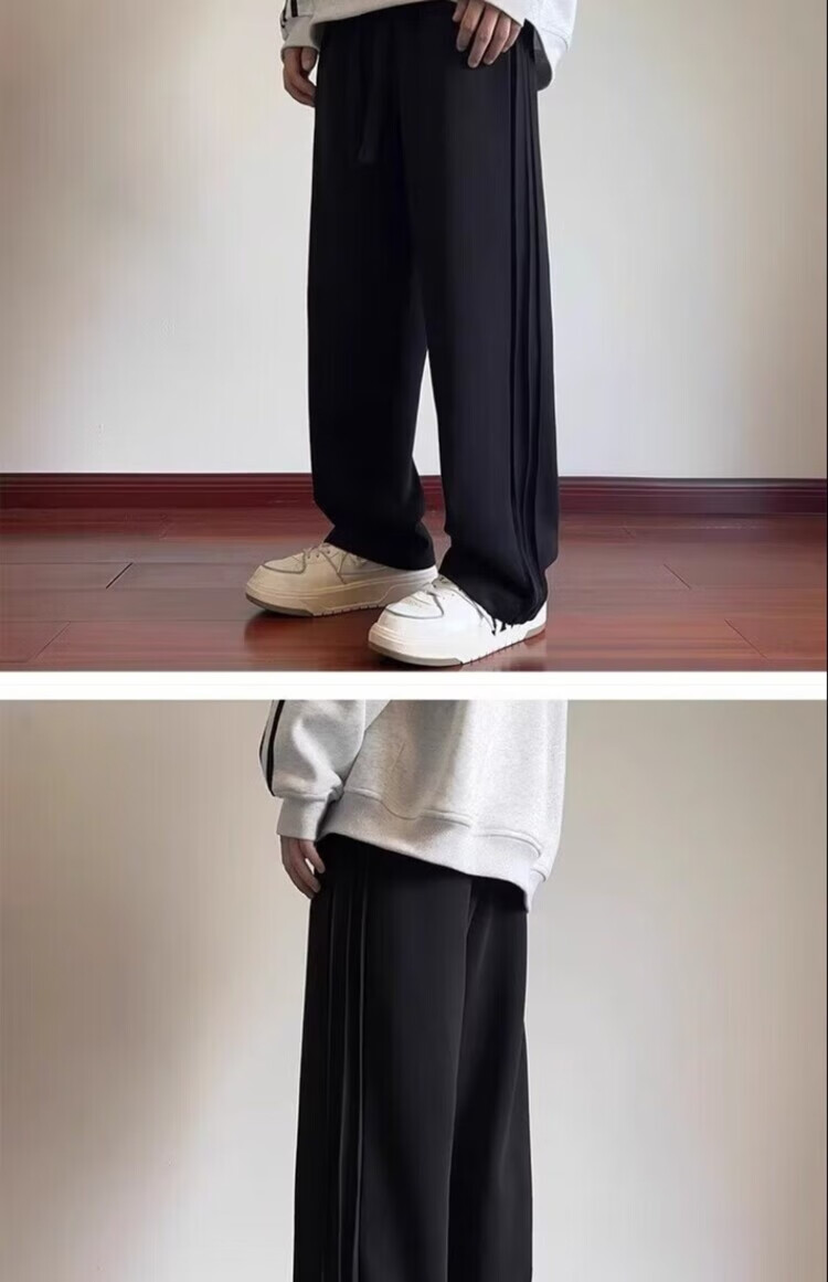 Heilan House (HLA) summer thin loose sports pants for men spring and autumn American retro solid color plus velvet youth drape casual pants trendy black plus velvet M