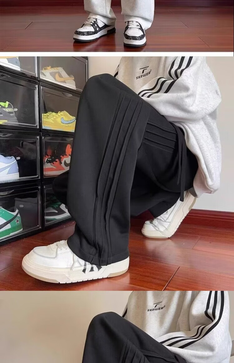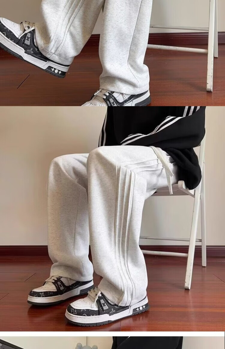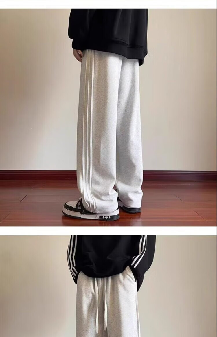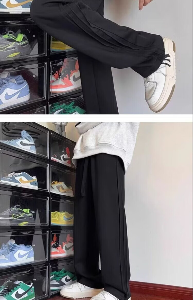 Heilan House (HLA) summer thin loose sports pants for men spring and autumn American retro solid color plus velvet youth drape casual pants trendy black plus velvet M