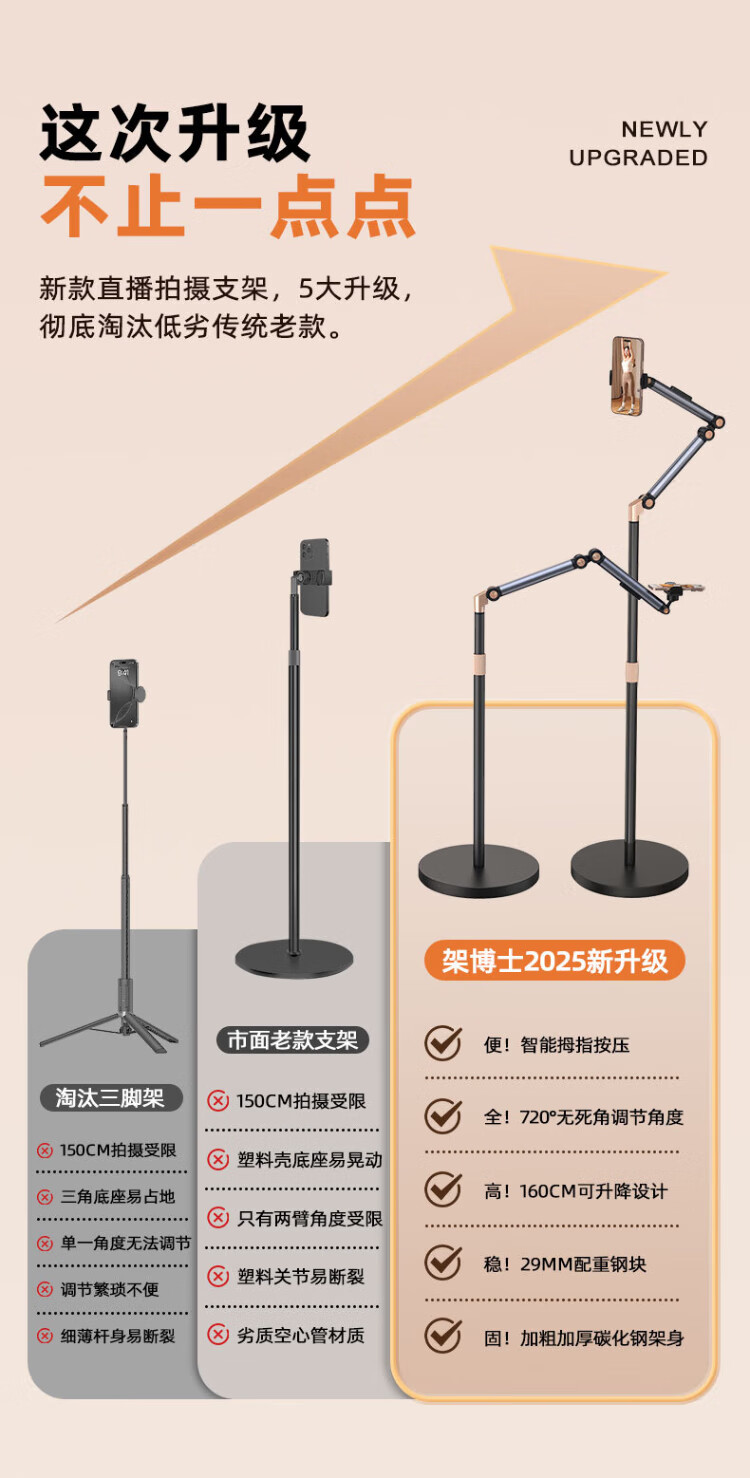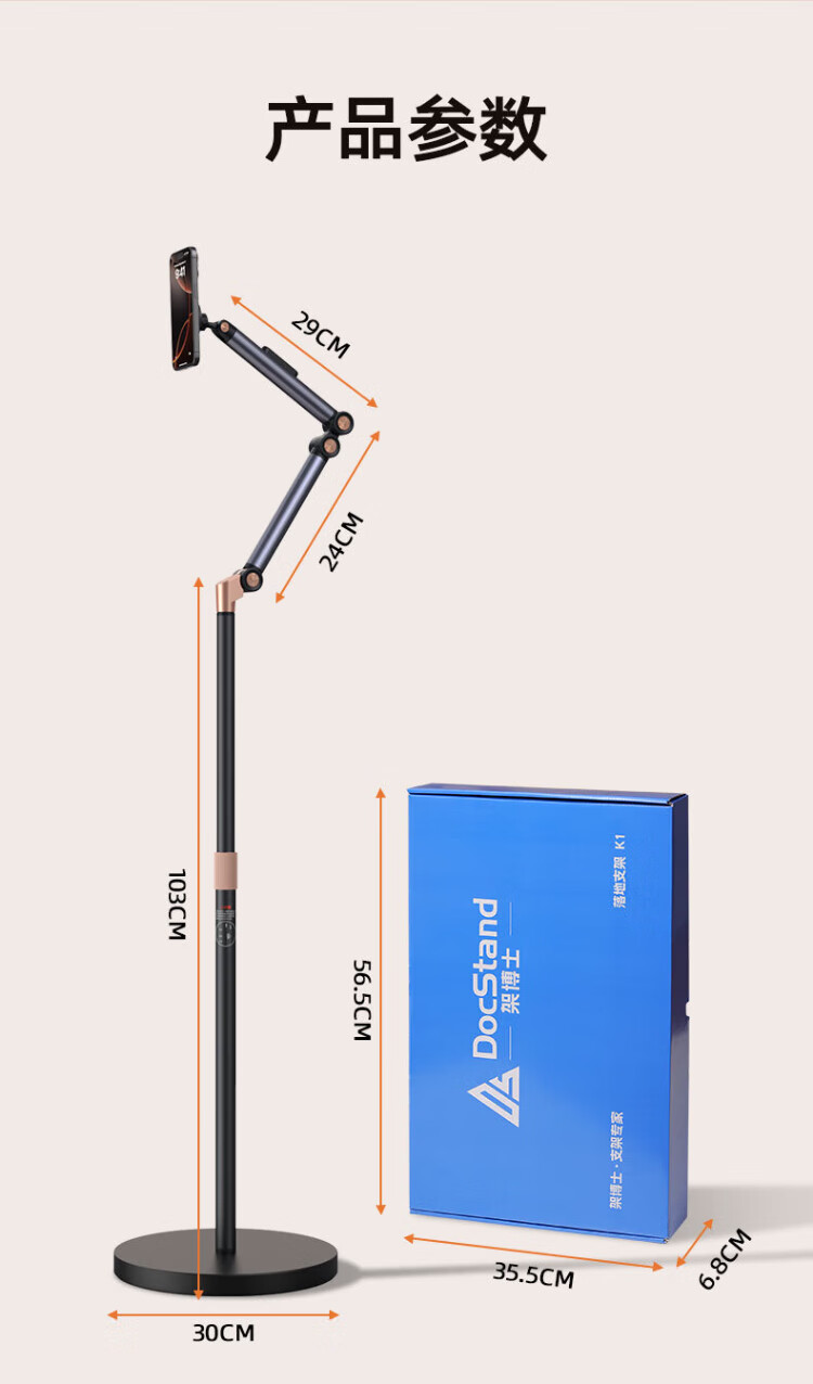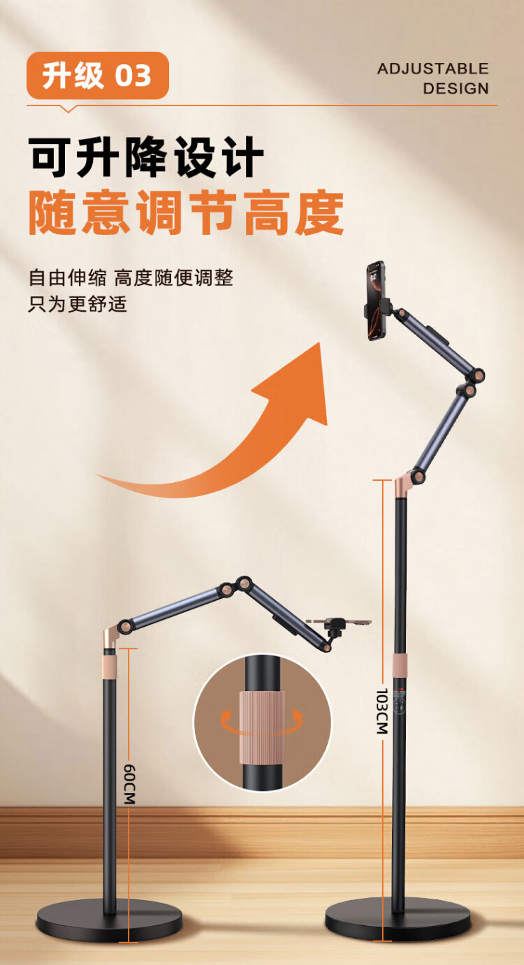 Dr. mobile phone stand, floor-standing live broadcast, overhead shot, tablet stand, bedside lazy person stand, ipad drama-chasing cantilever telescopic online class learning selfie camera artifact, video shooting equipment, mobile phone upgrade, retractable - universal for mobile phones and tablets