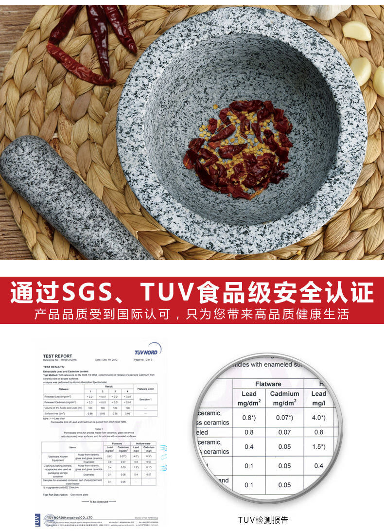 Garlic mortar, stone mortar, garlic masher, garlic mortar, household manual chili grinder, garlic masher, classic garlic mashing cup 19*11:5cm, free garlic hammer