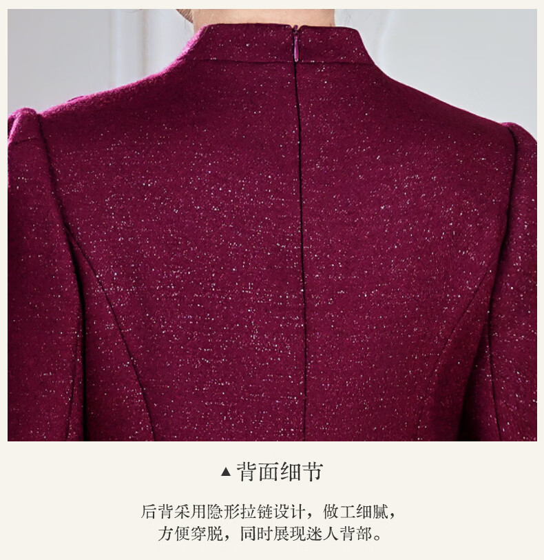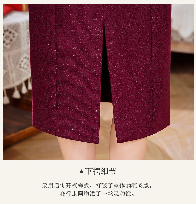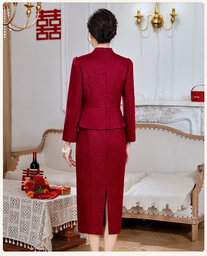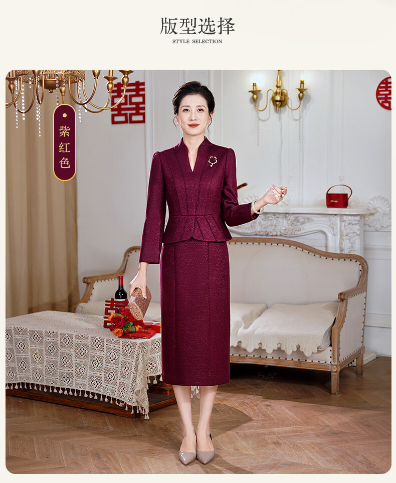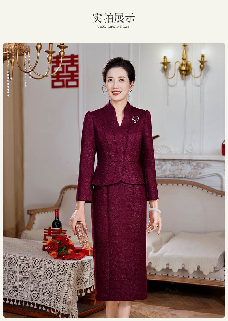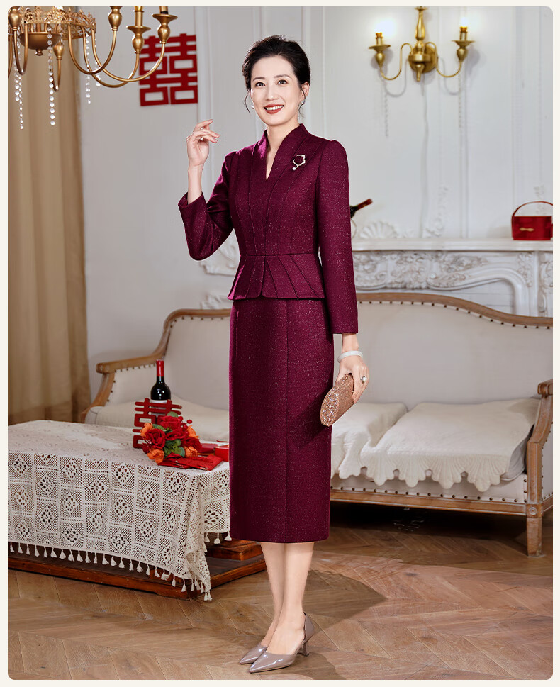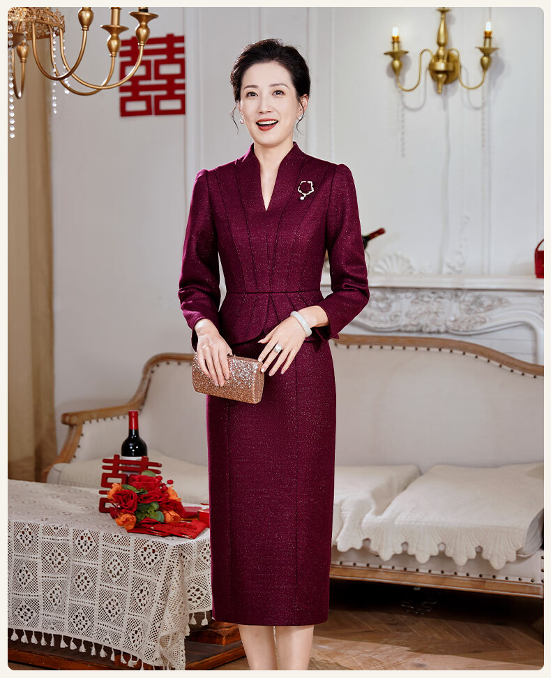 Fumini high-end mother-in-law wedding banquet evening dress fake two-piece wool dress autumn and winter wear mother's wear wedding wedding dress purple L