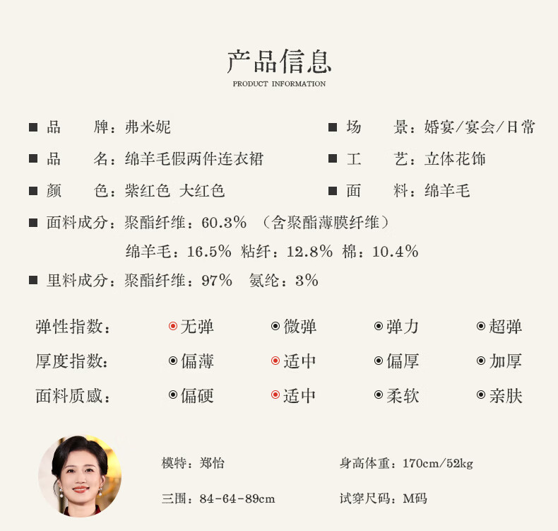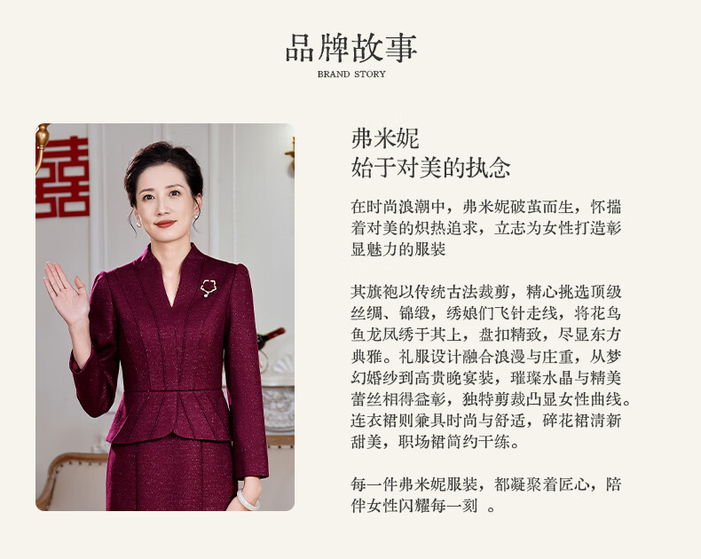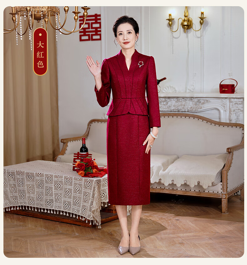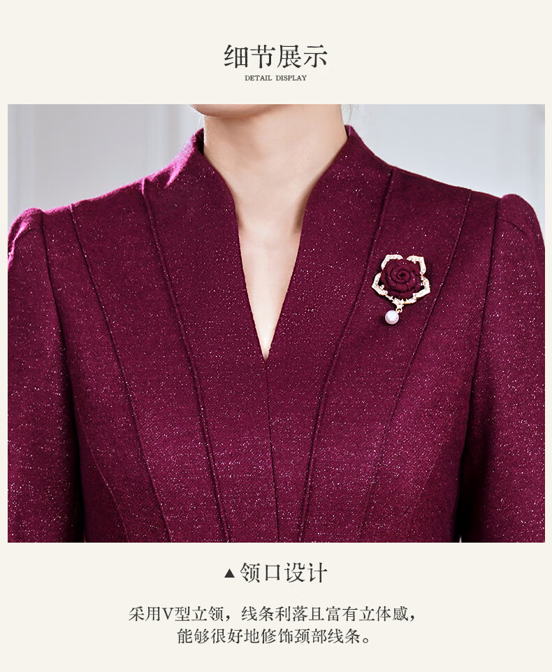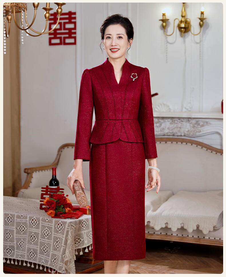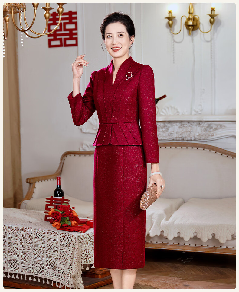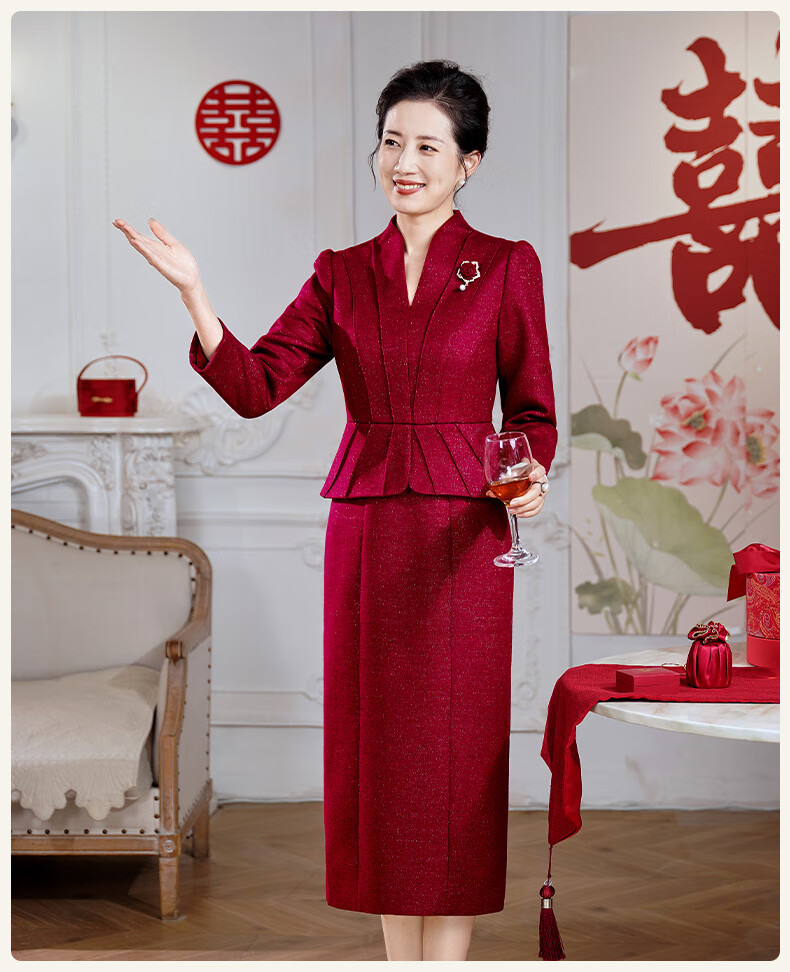 Fumini high-end mother-in-law wedding banquet evening dress fake two-piece wool dress autumn and winter wear mother's wear wedding wedding dress purple L