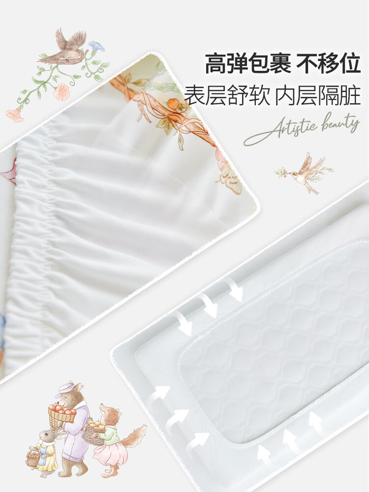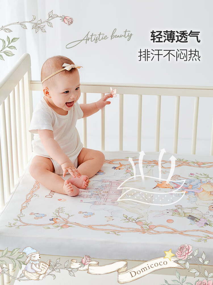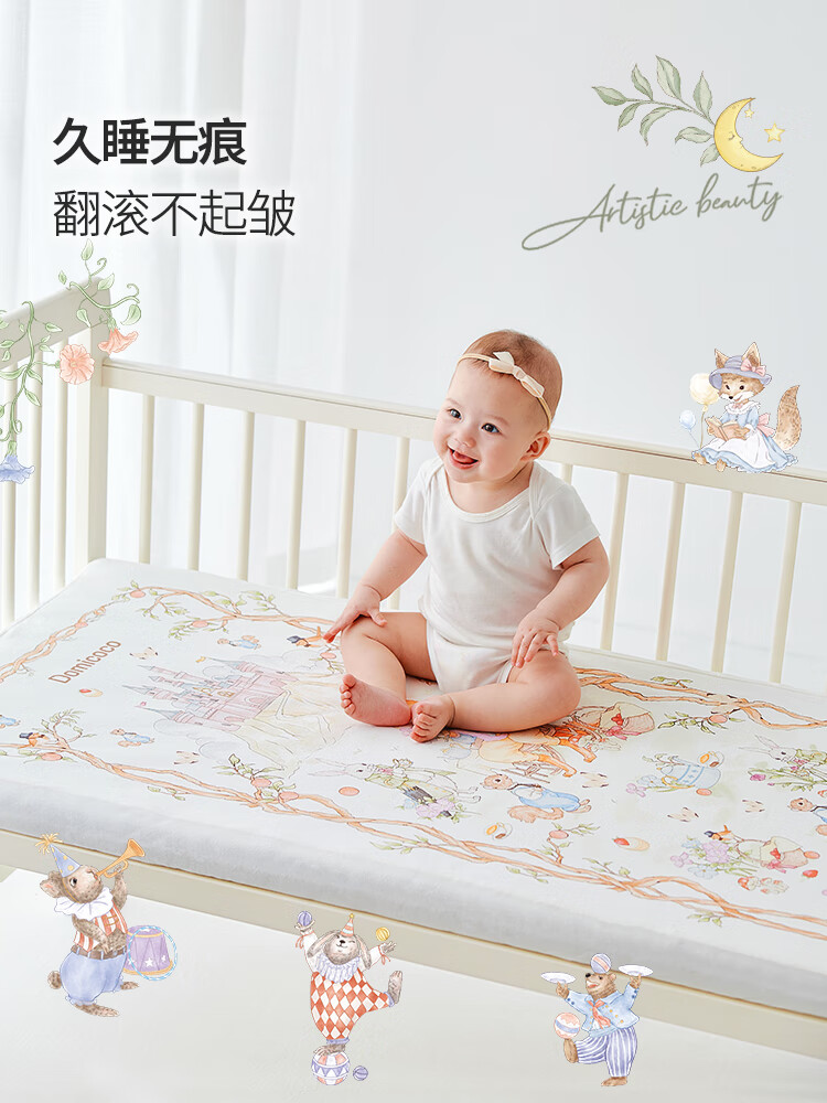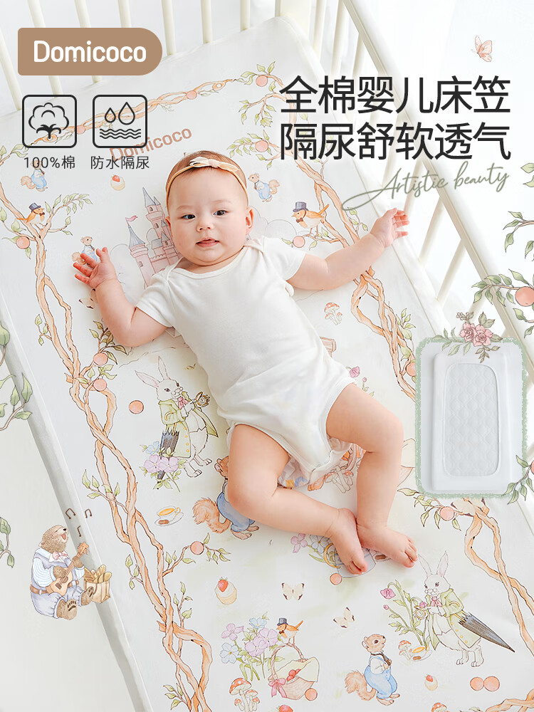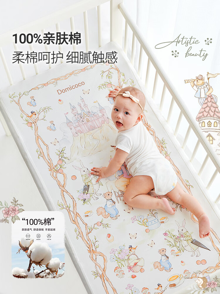 DOMICOCO Duomi Coco Baby Class A Bed Sheet Pure Cotton Children's Sheet Mattress Cover Baby Bedspread Waterproof Splicing Bed Four Seasons Afternoon Leisure Time 56*100cm
