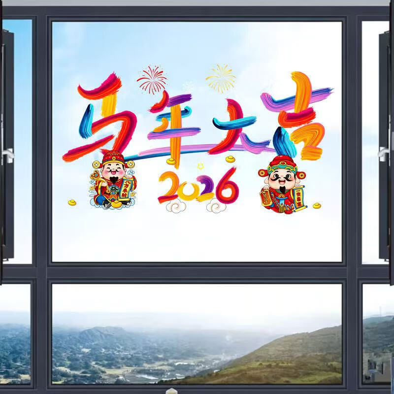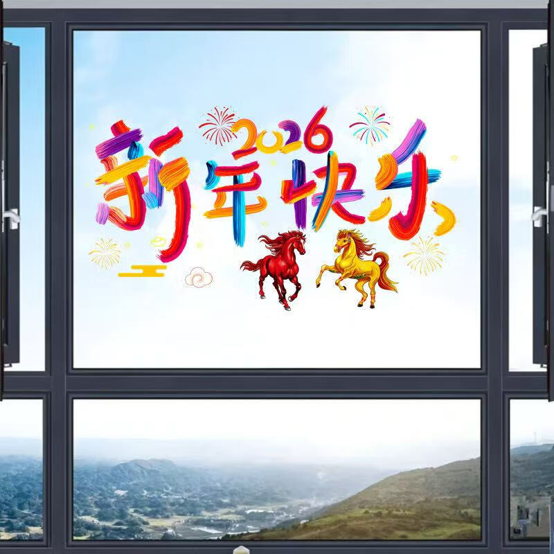 2026 New Year, Year of the Horse, Colorful Home and Car Dual-Purpose Glass Window Decoration Glue-Free Static Electric Body Sticker Happy New Year Pattern (Static Electric No Glue) 63*39cm Can Fit Car Rear Window