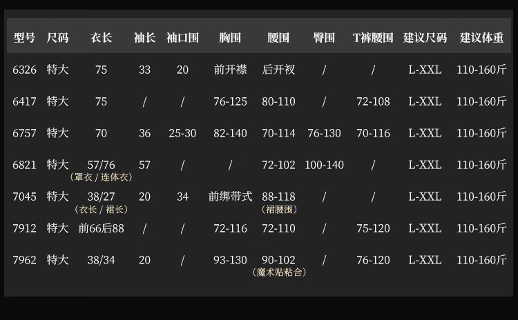 China (cm) 160-165/84-86 165-170 / 88-90 167-172 / 92-96 168-173 / 98-102 170-176 / 106-110