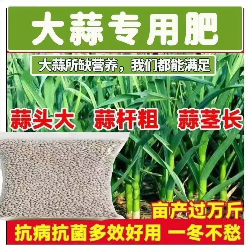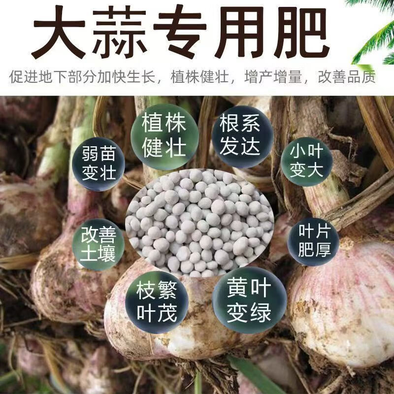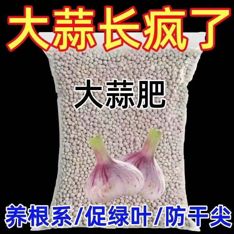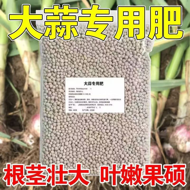 New type of special fertilizer for strong growth of garlic. Resist disease and lodging, promote strong roots and strong seedlings. Prevent dry tips and yellow leaves. Prevent disease and green leaves to promote growth. Special fertilizer for garlic. 5Jin Jin is equal to 0.5 kg.