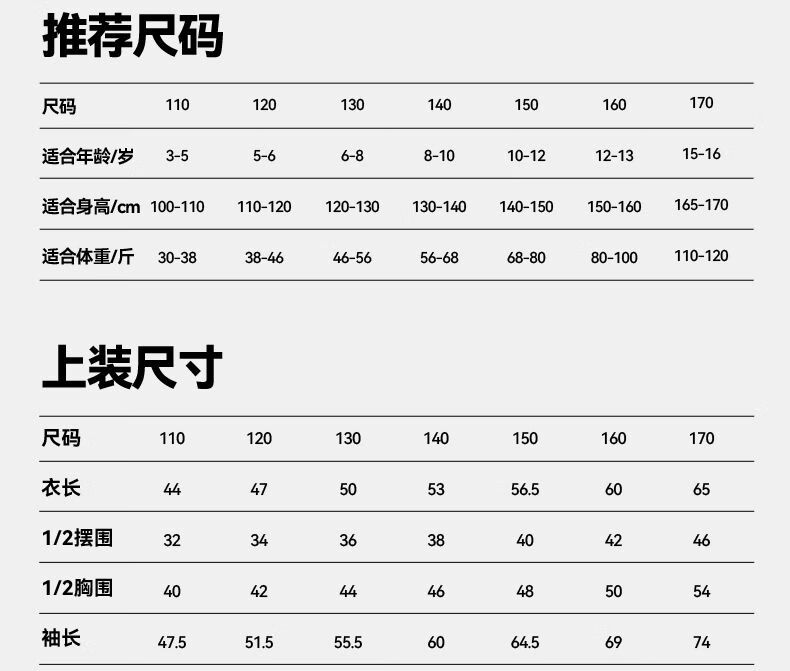 China (cm) 160-165/84-86 165-170 / 88-90 167-172 / 92-96 168-173 / 98-102 170-176 / 106-110
