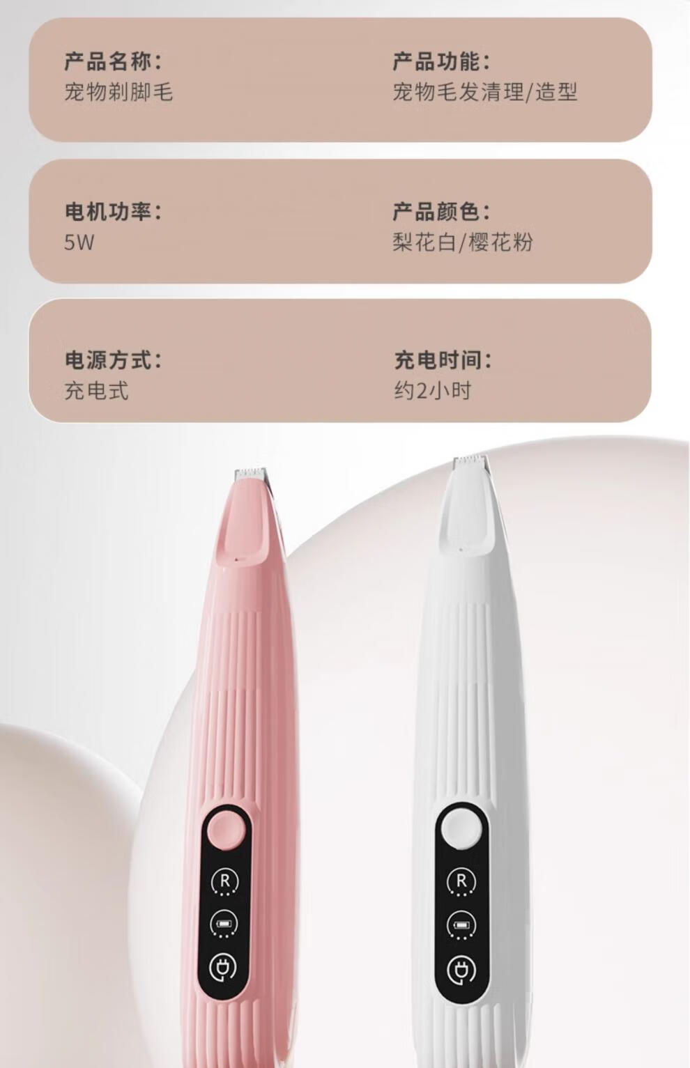 MDNG German pet foot shaver dog and cat hair clipper electric clipper for shaving dog and cat hair 6th generation silent upgrade pear white LED foot hair clipper