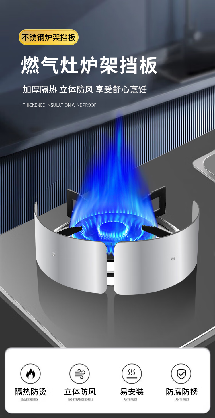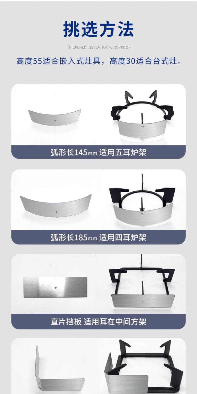 Xinguang gas stove windshield, fire cover, energy-saving ring, gas stove fire ring, fire shield, windproof stove accessories, universal curved 200*80mm upgraded model, four ears recommended, no Specifications