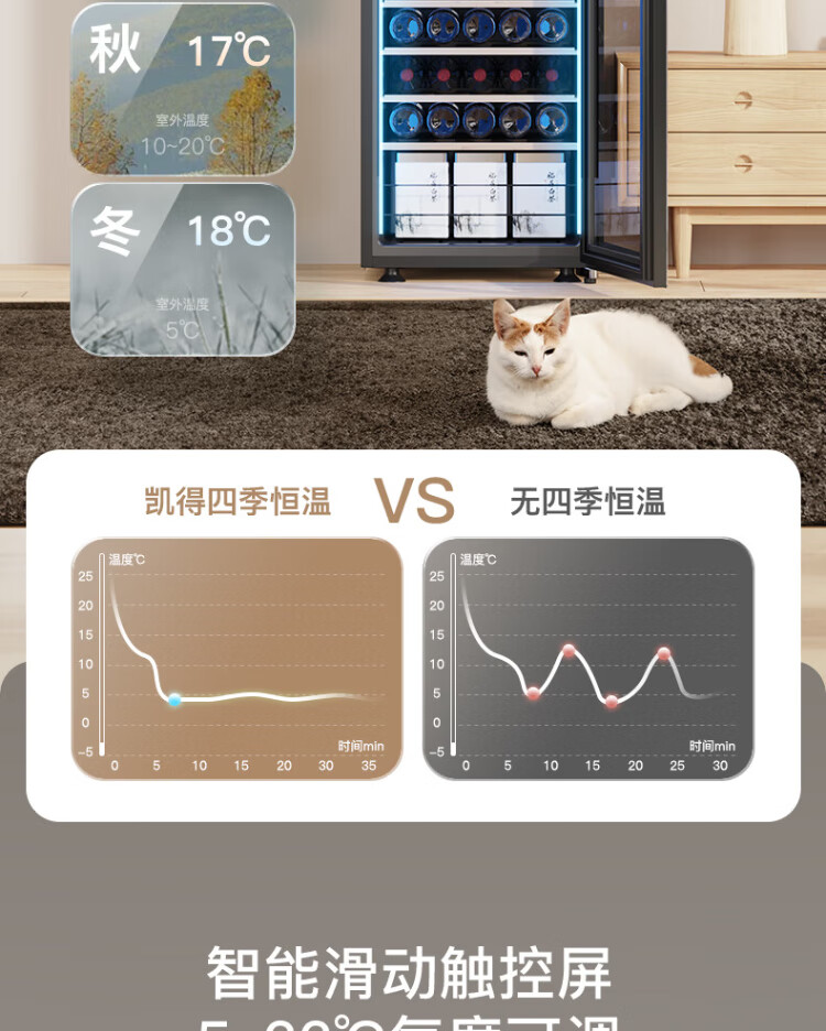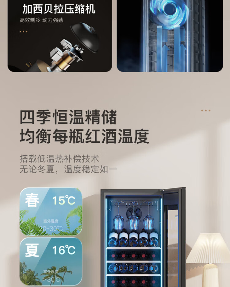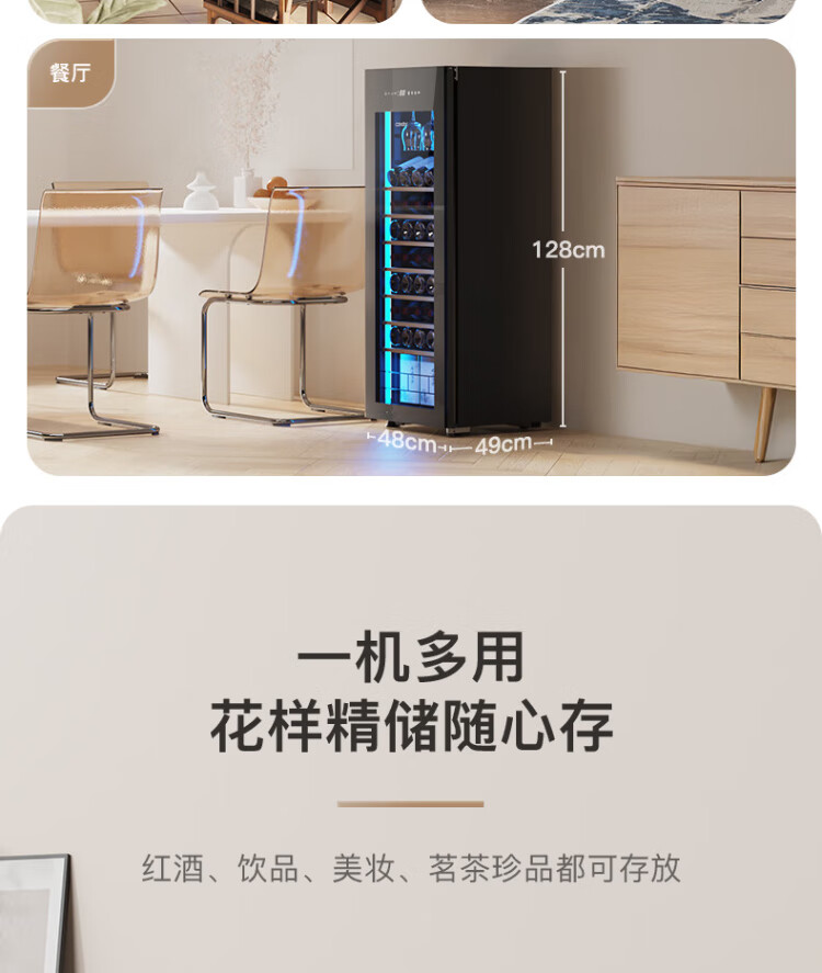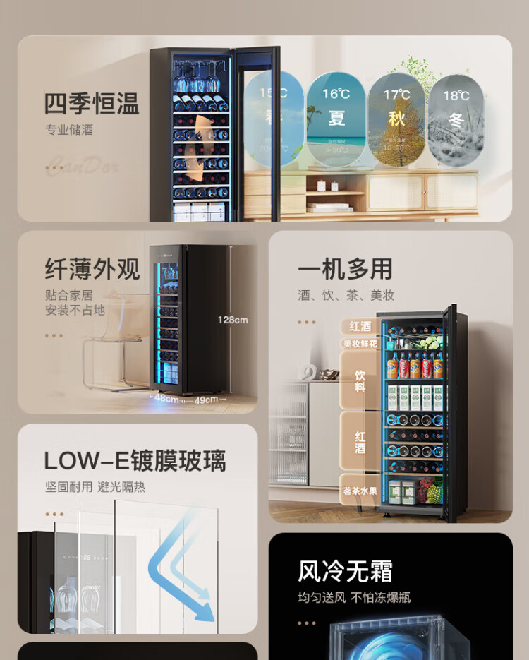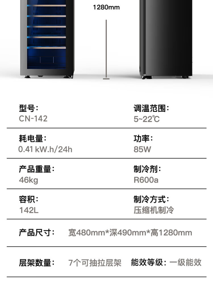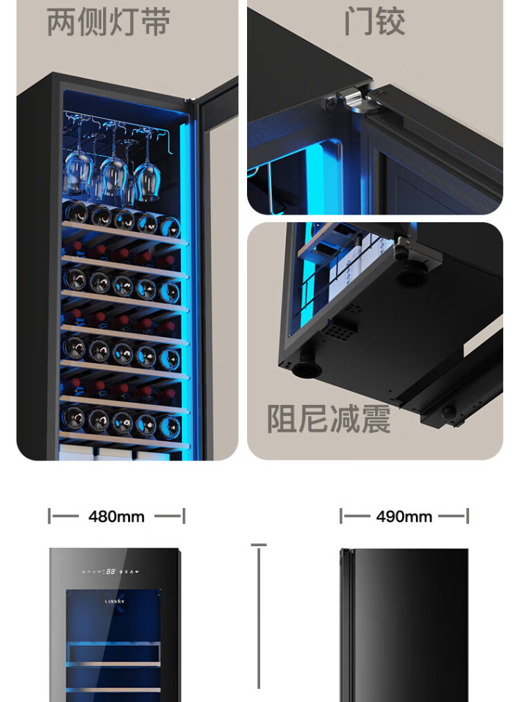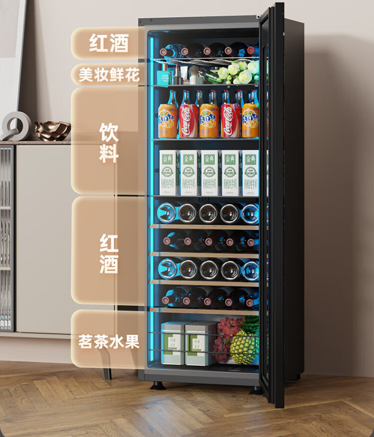 Candor Constant Temperature Red Wine Cabinet Home Wine Cabinet Living Room Office Small Red Wine Tea Beverage Refrigerator Fresh Cabinet Wine Cabinet Ice Bar Dual-Purpose | CN-142 142L
