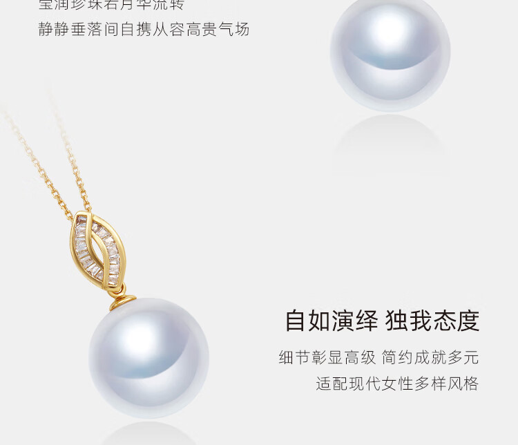 Ruan Shifengyi Freshwater Pearl Pendant Women's 18k Gold Diamond Round Clavicle Chain Necklace for Girlfriend 18K Gold/Zircon/Approx. 11-12mm