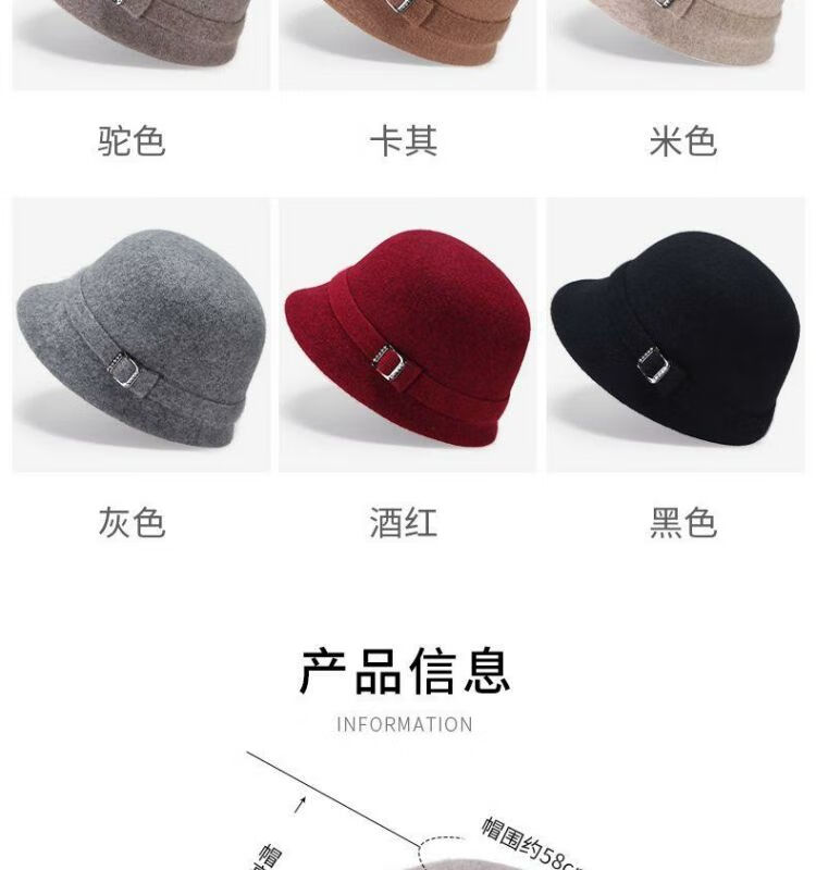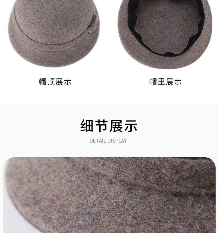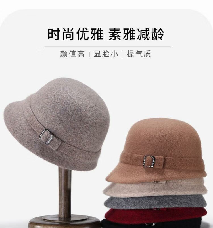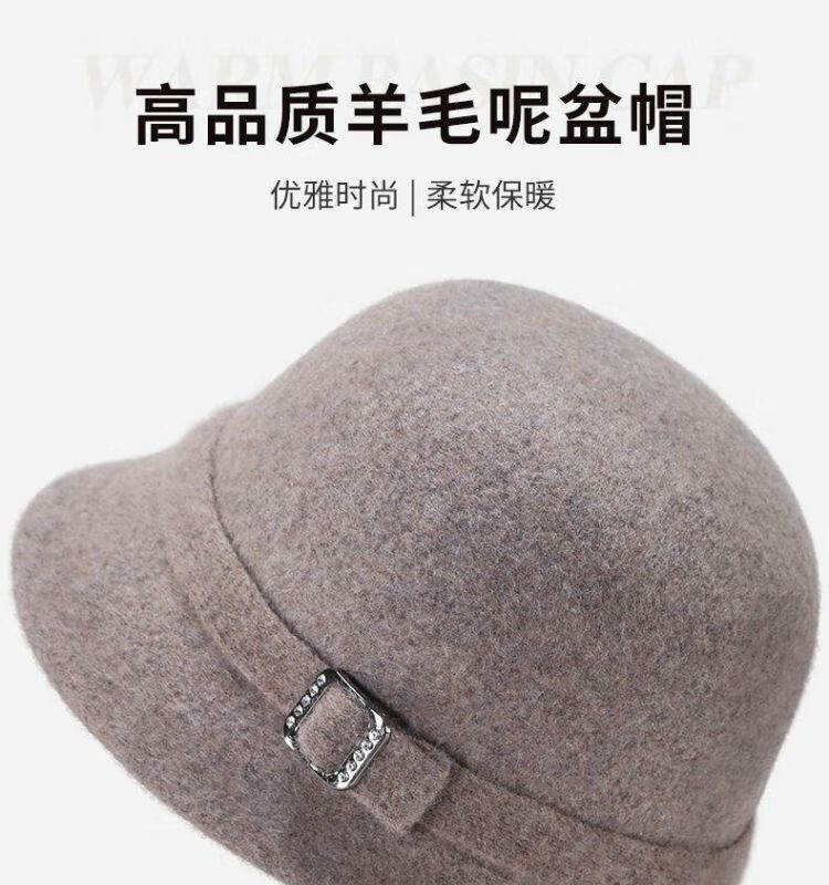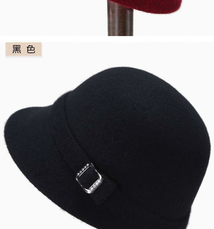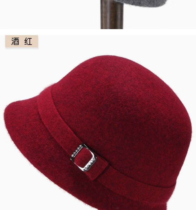 Hengyuanxiang middle-aged and elderly mother's hat women's pure wool autumn and winter basin hat grandma hat British thickened and warm for the elderly burgundy one size adjustable