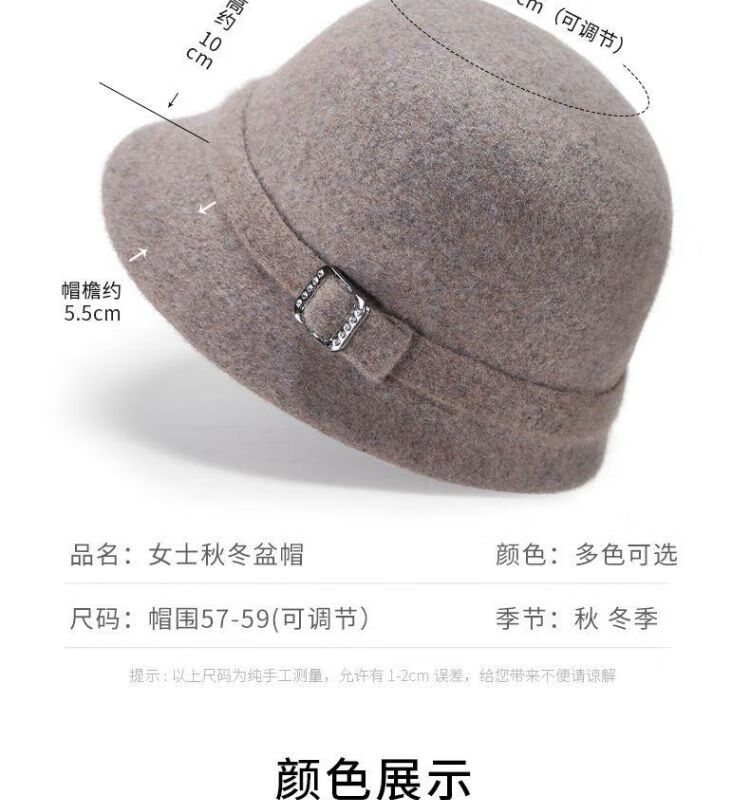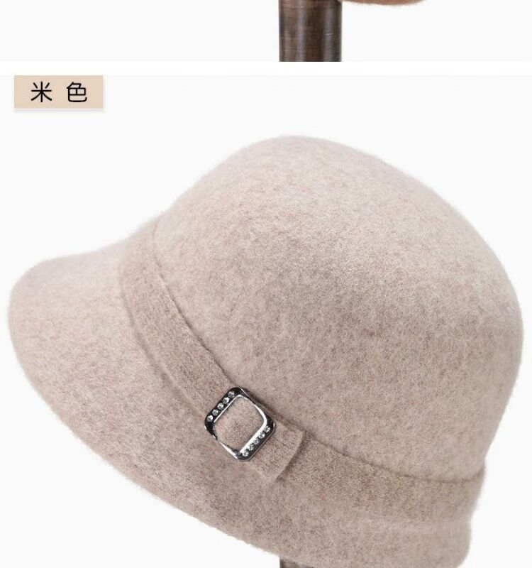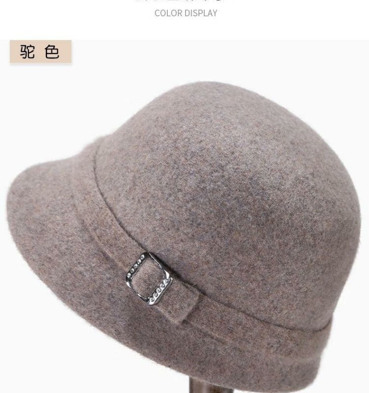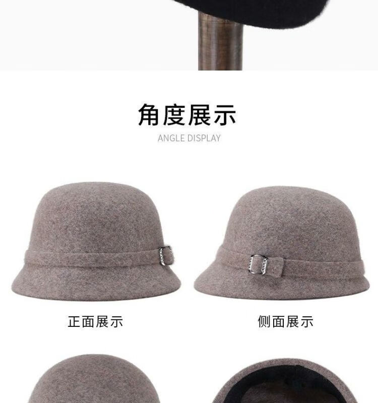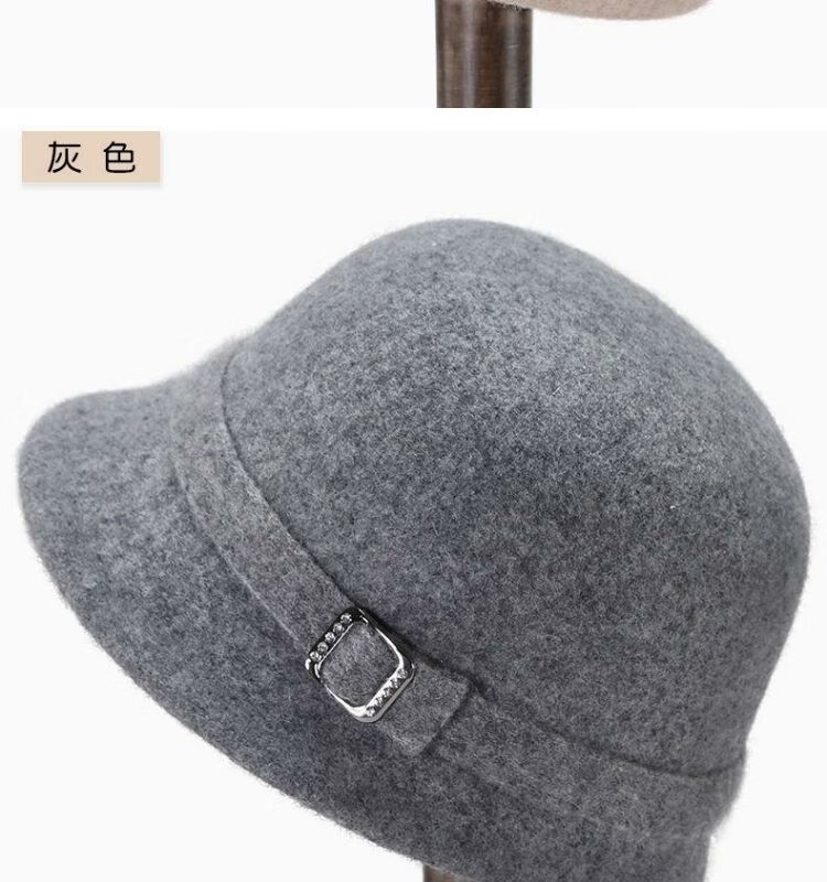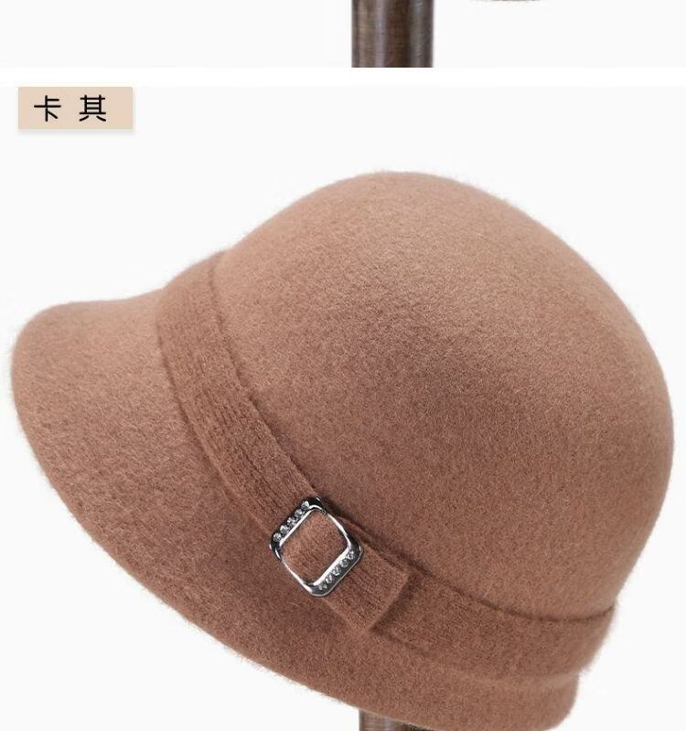 Hengyuanxiang middle-aged and elderly mother's hat women's pure wool autumn and winter basin hat grandma hat British thickened and warm for the elderly burgundy one size adjustable