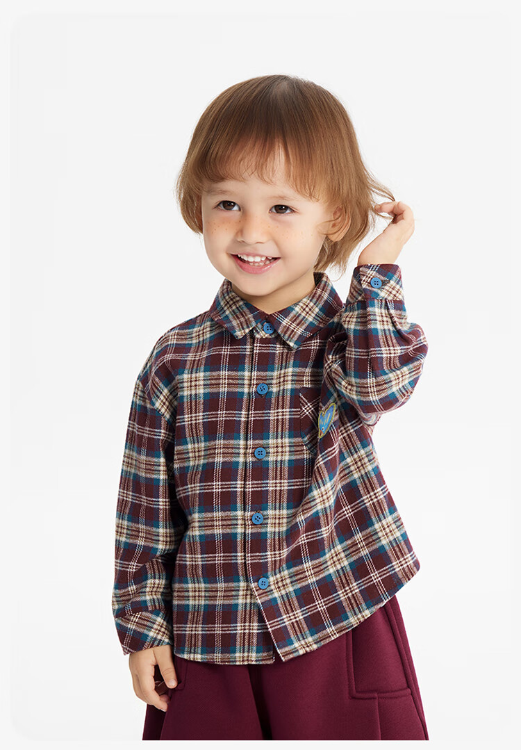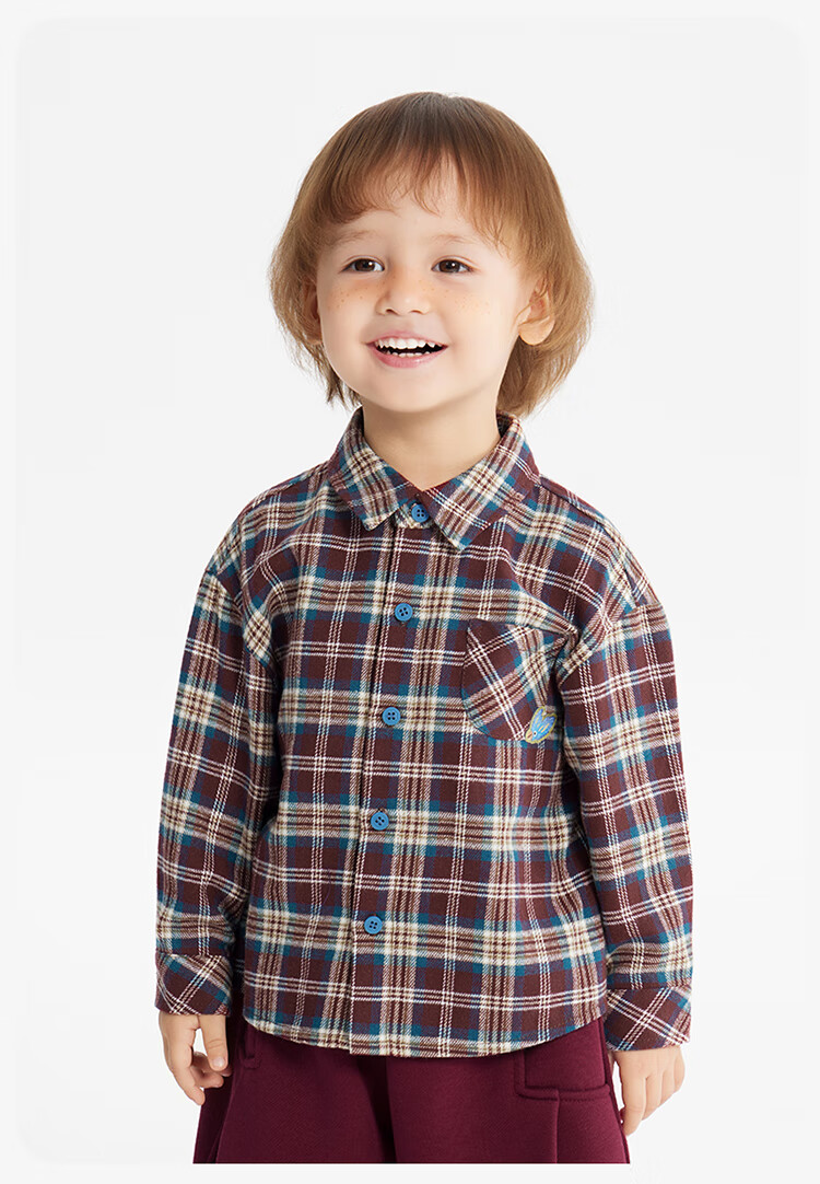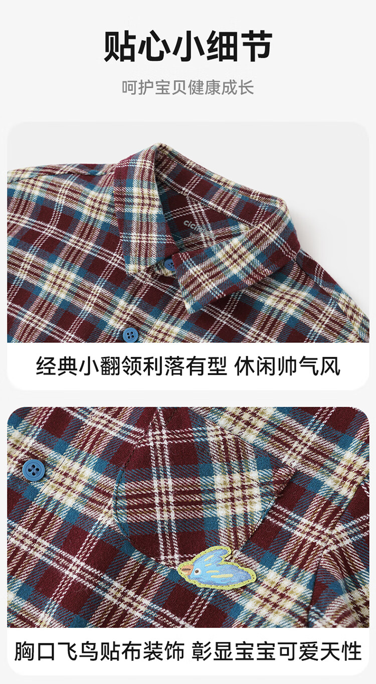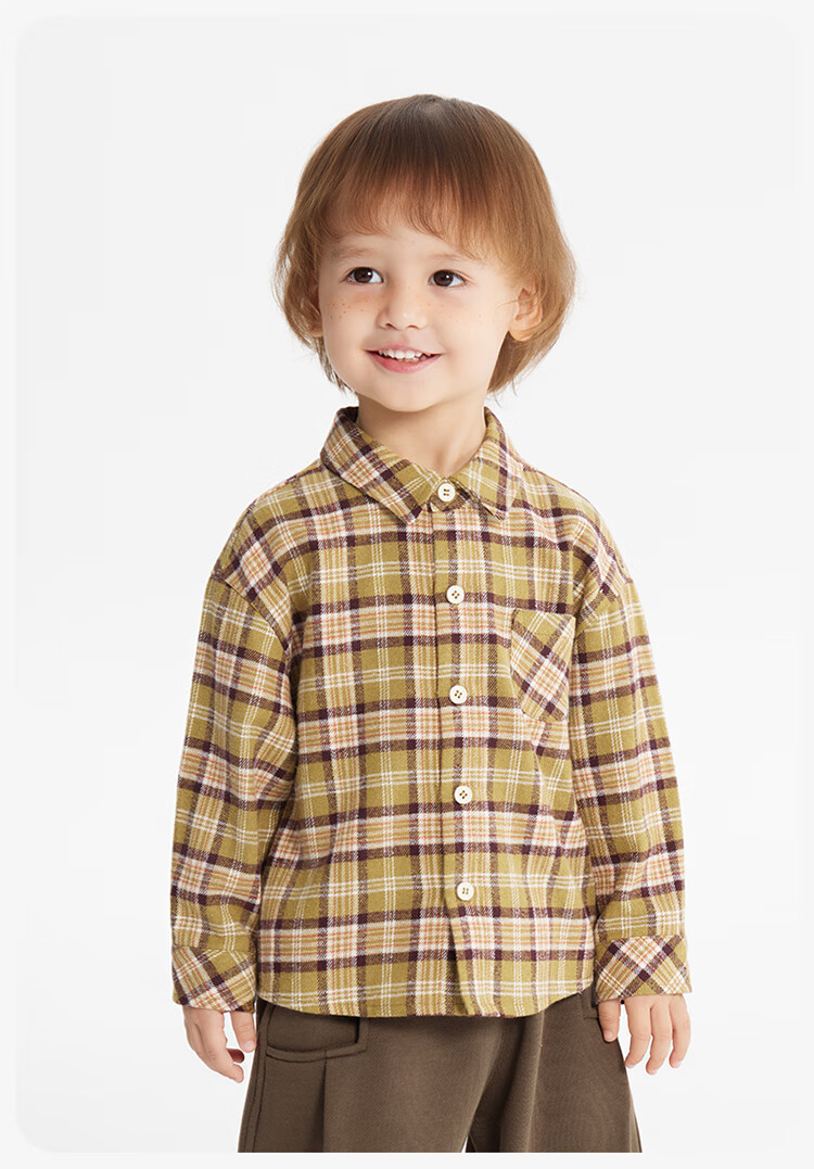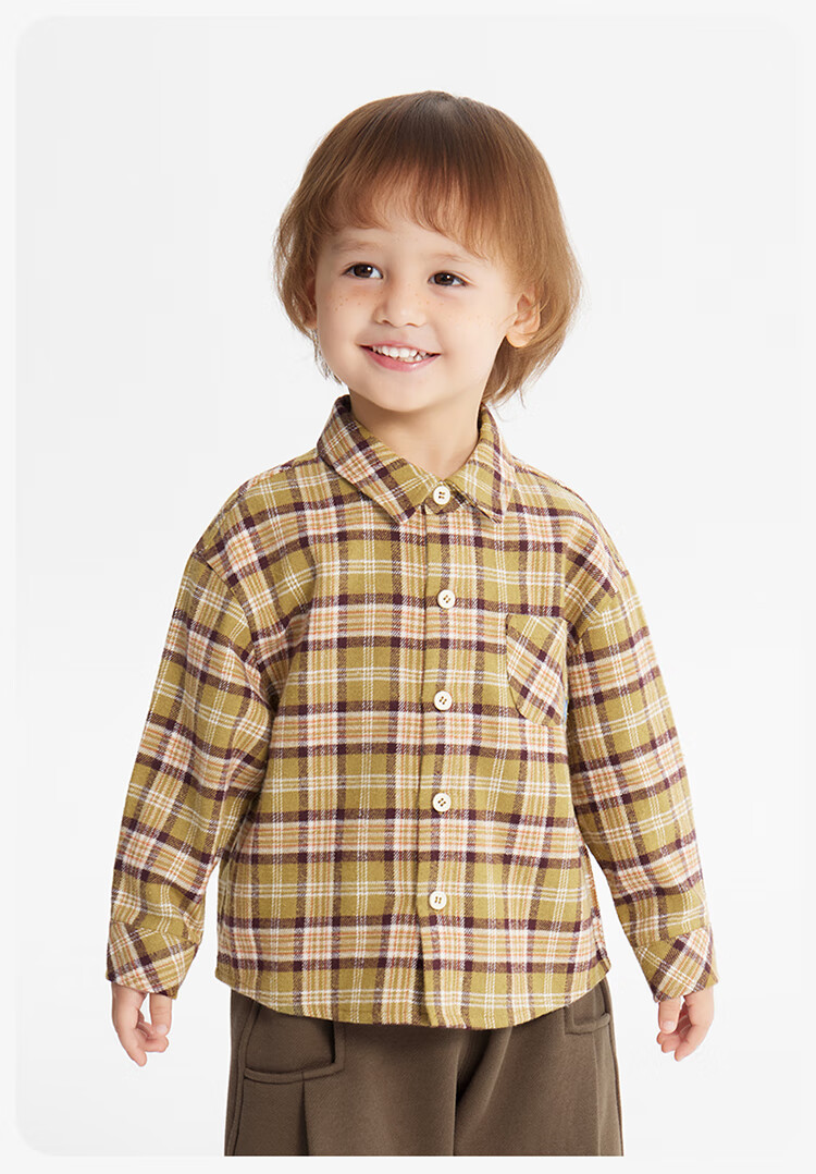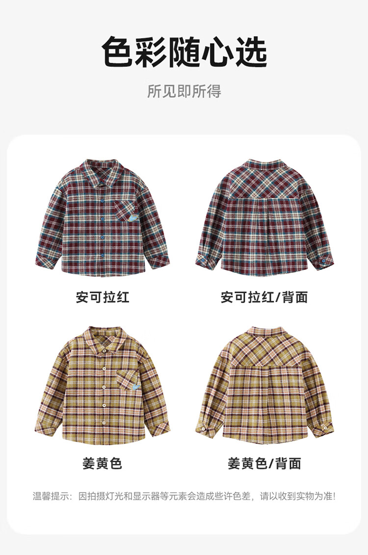 Cici Bear (ciciibear) pure cotton Cici Bear baby plaid shirt boys jacket spring and autumn 2025 new children's long-sleeved shirt top ginger 120