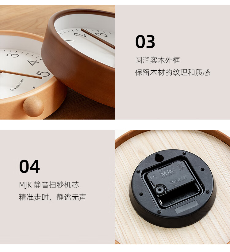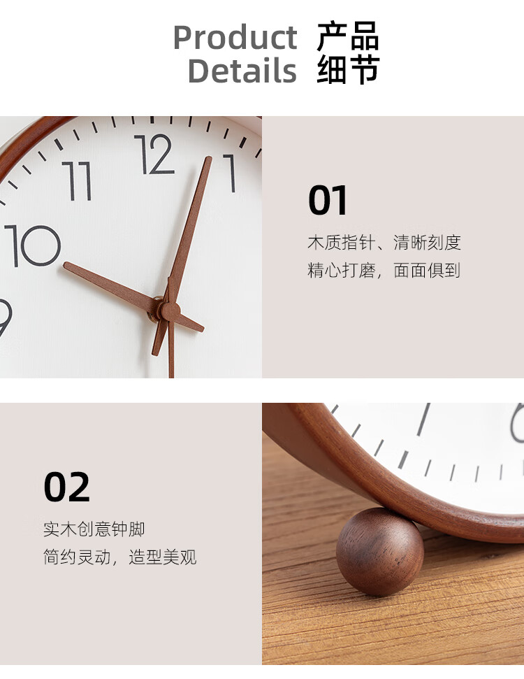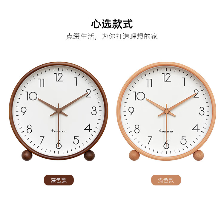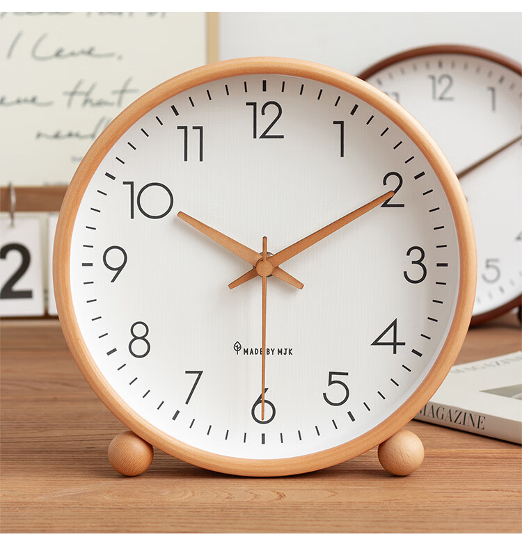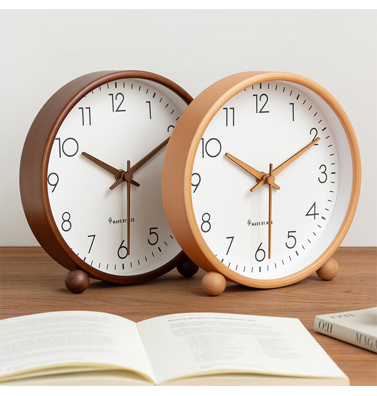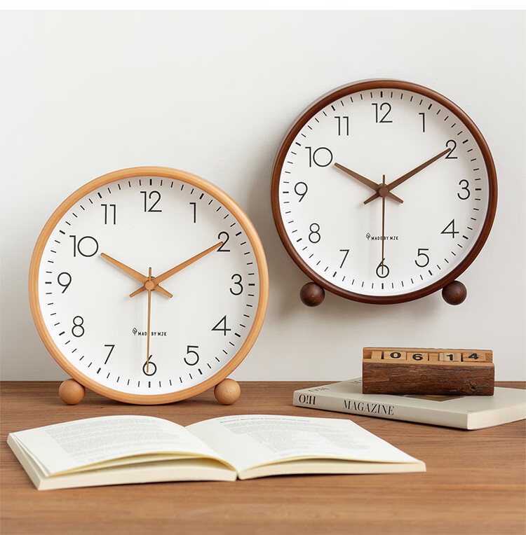 MJK mid-century style solid wood clock for home living room 2025 new tabletop silent clock display desktop clock ornaments walnut color 8 inches diameter 22cm