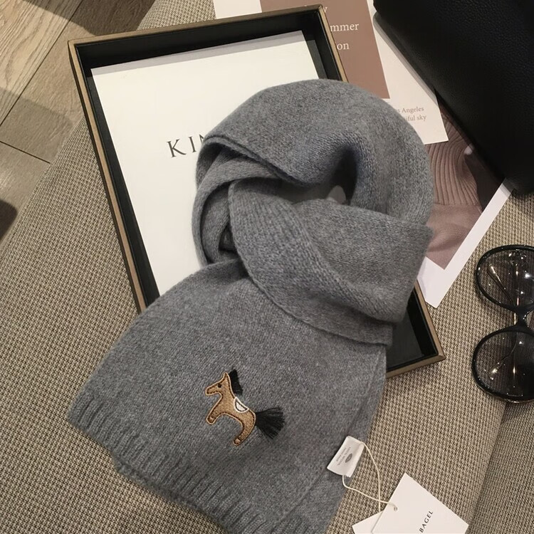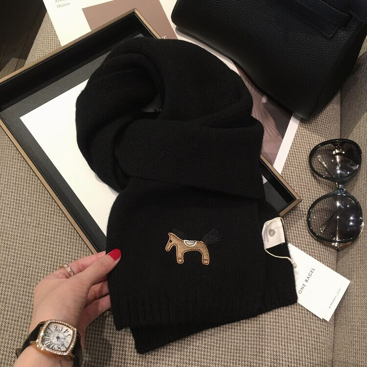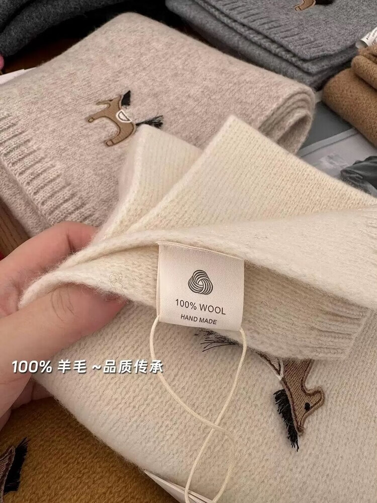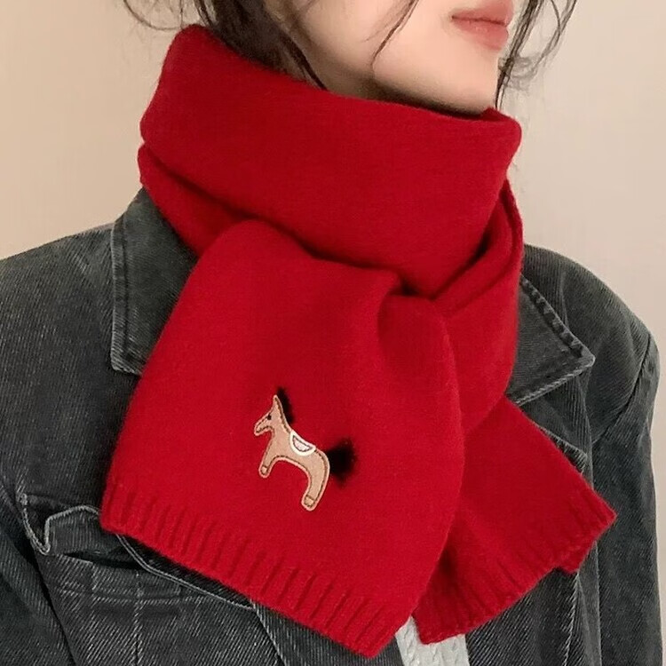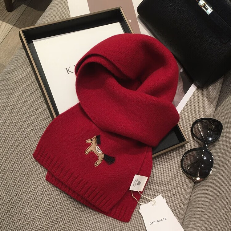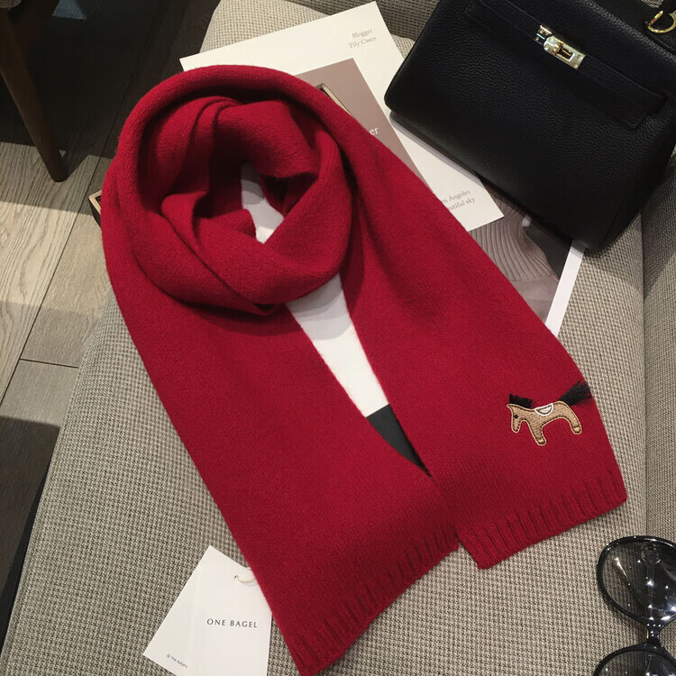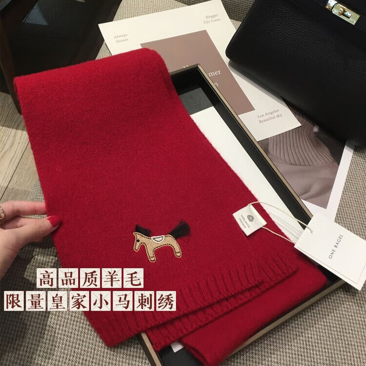 Hengyuanxiang exports original single pony embroidery WOOL 100% wool New Year red scarf for men and women autumn and winter warm scarf shawl red 100% wool