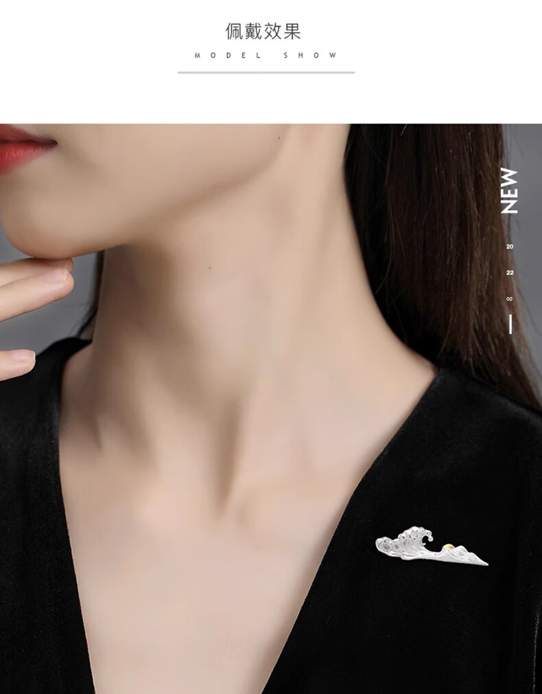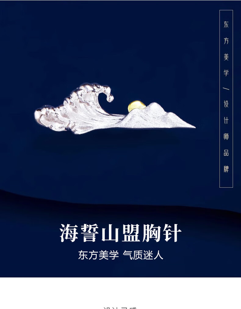 Lao Fengxiang S925 silver Eachother brooch, high-end women's light luxury and elegant birthday gift for girls, exquisite niche and practical, Eachother's brooch* light luxury high-end* brand gift box