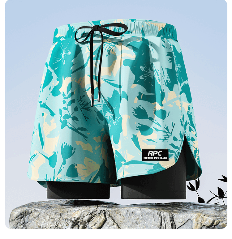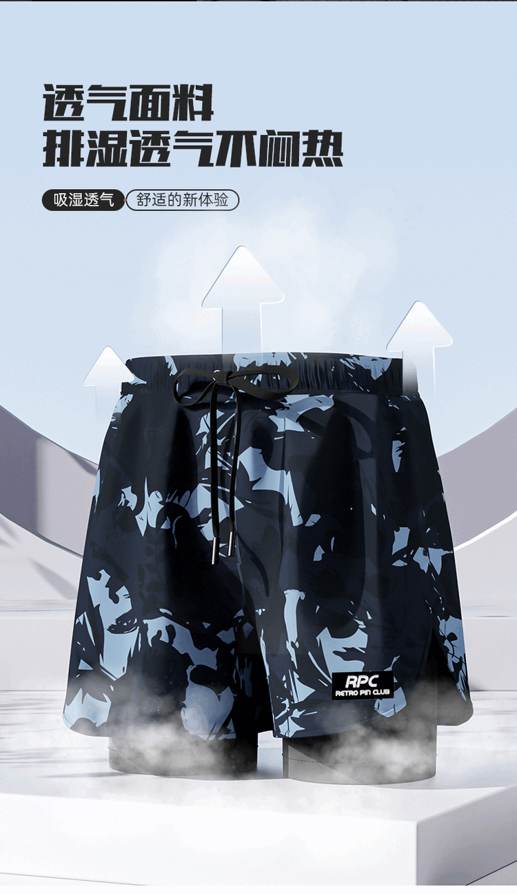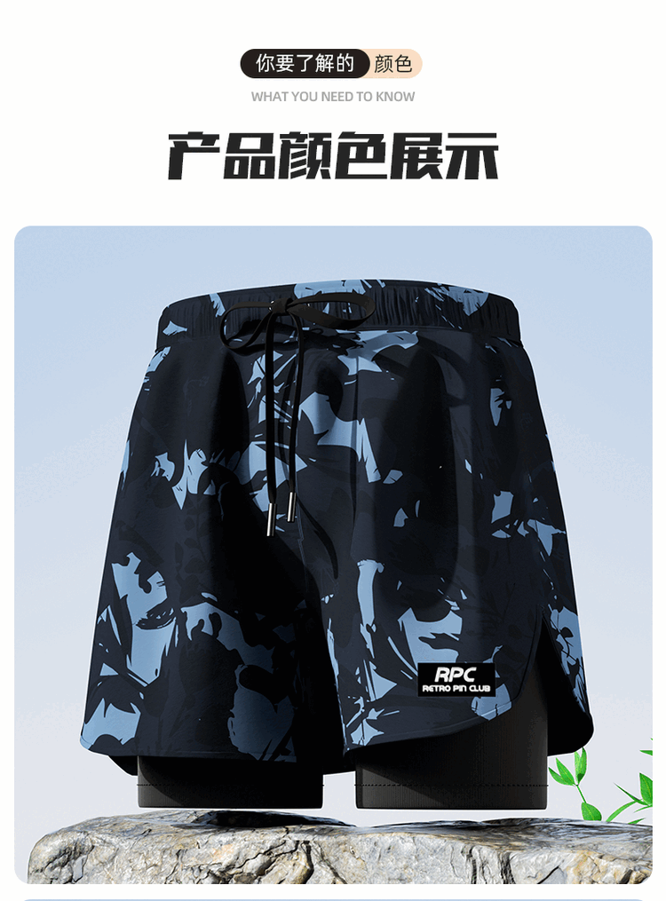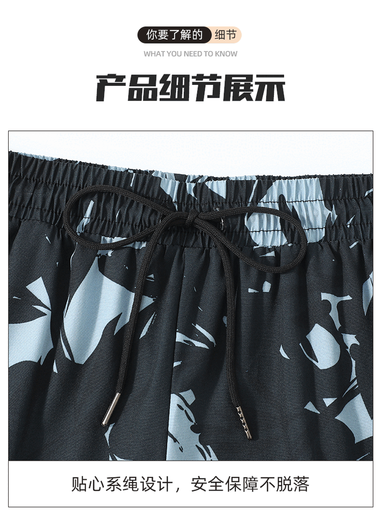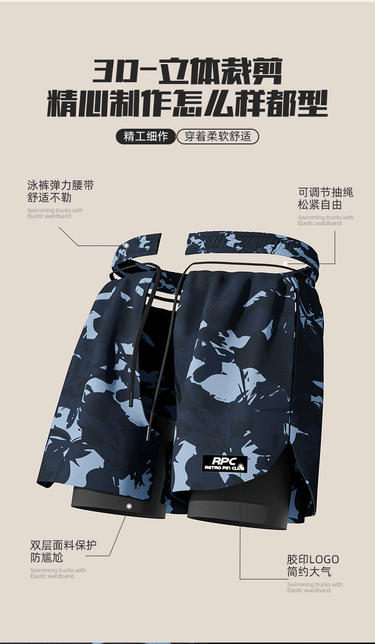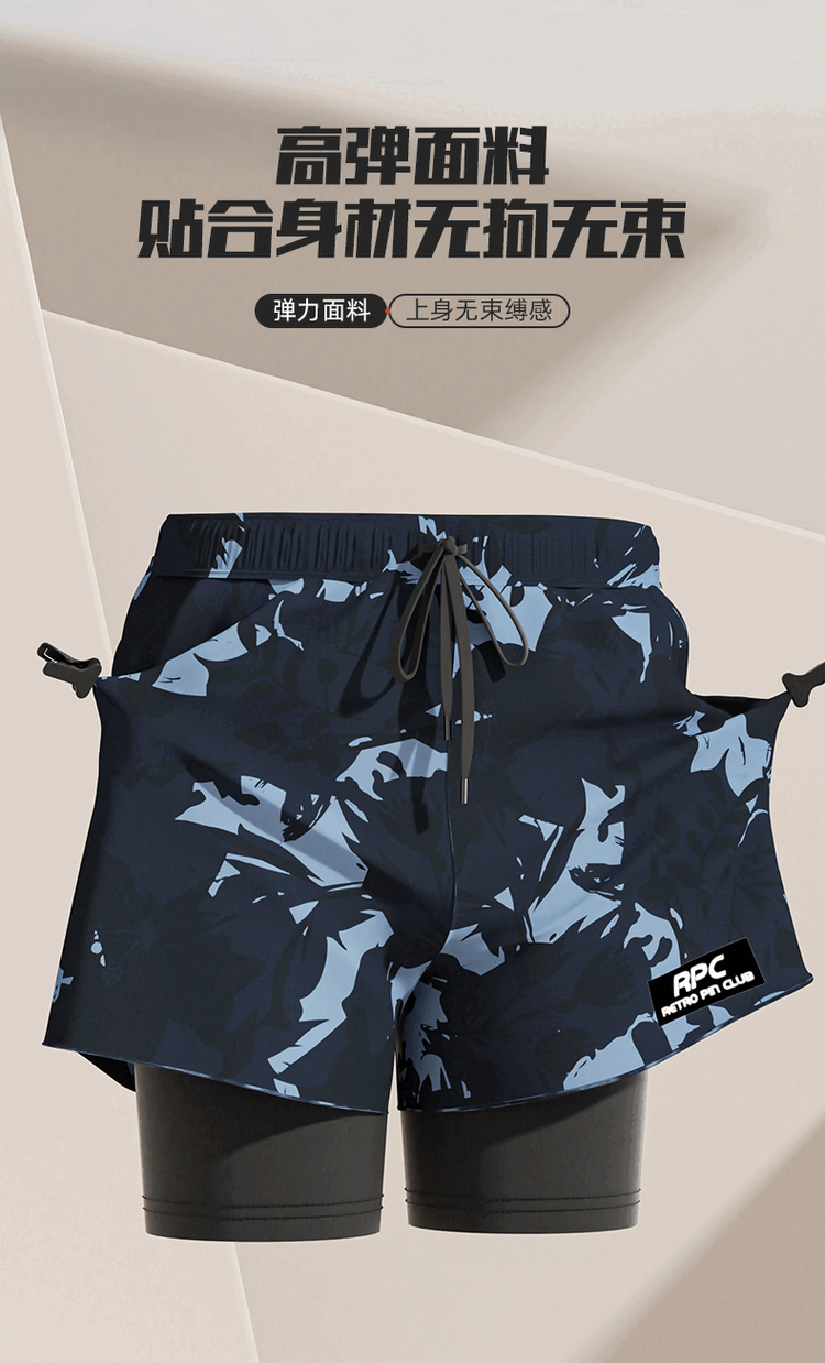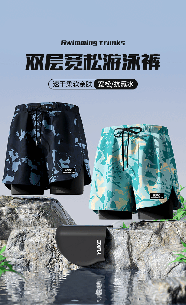 Yuke swimming trunks for men, quick-drying, large size to prevent embarrassment, 2025 new professional swimming equipment, men's beach shorts, soaking temperature, navy print + swimming cap + swimming goggles, free earplugs and nose clip, L, recommended weight 90-105Jin Jin is equal to 0.5 kg