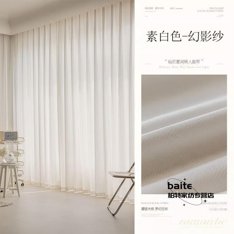Phantom gauze curtains thickened huge net red gauze curtain light-proof bedroom white gauze living room balcony window screen sunshade Twisted phantom gauze - pure moon white (hook type) contact customer service for free shortening double pleat technology (width 1.5 meters * height 2.7 meters 2 pieces) - covering width 1