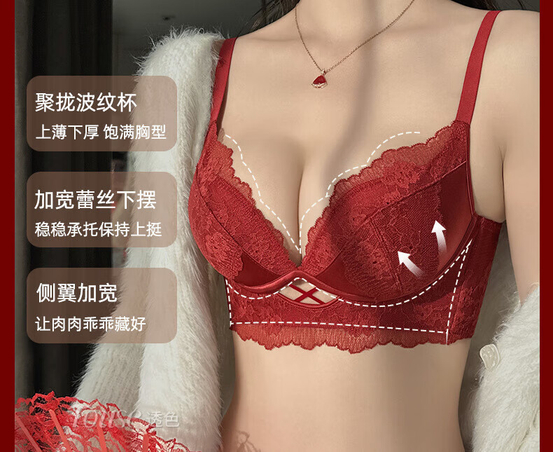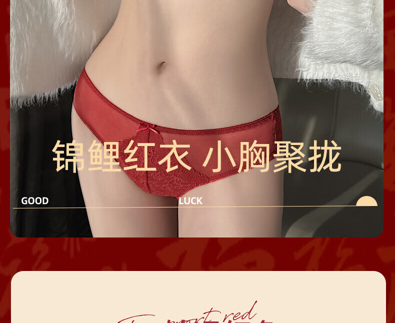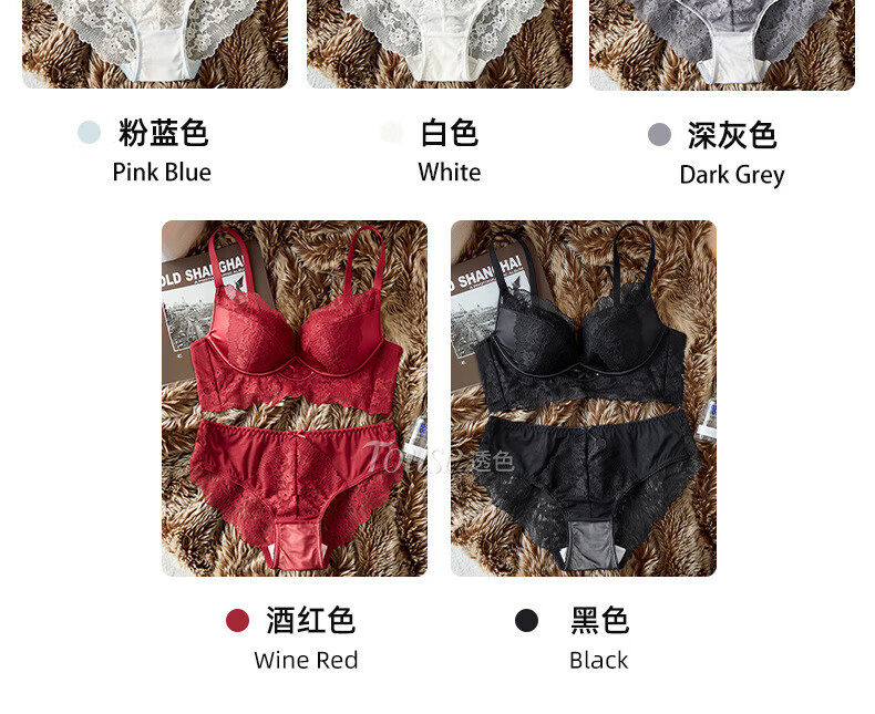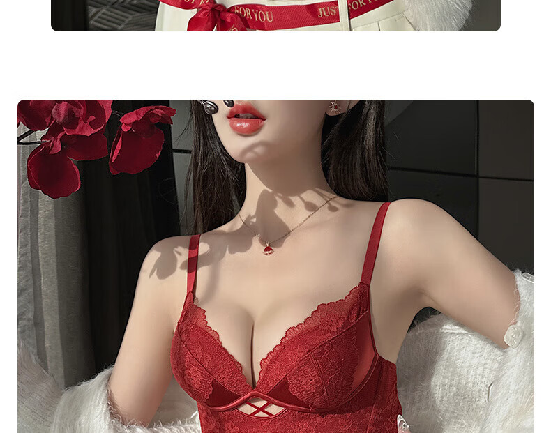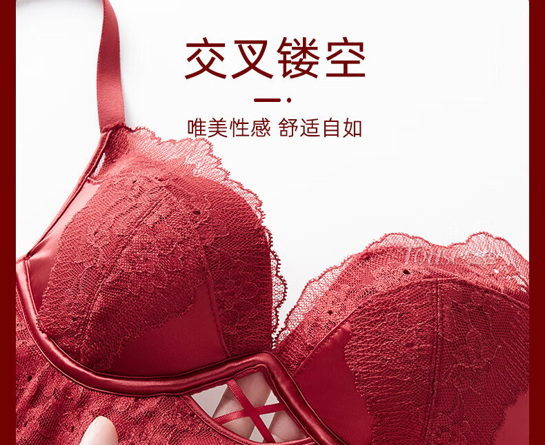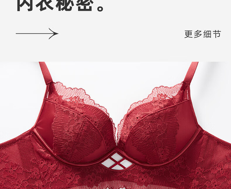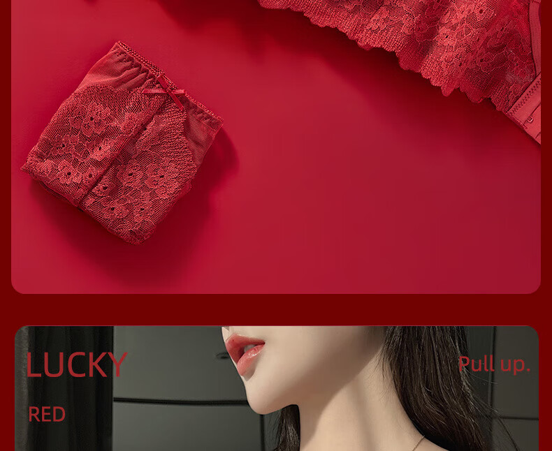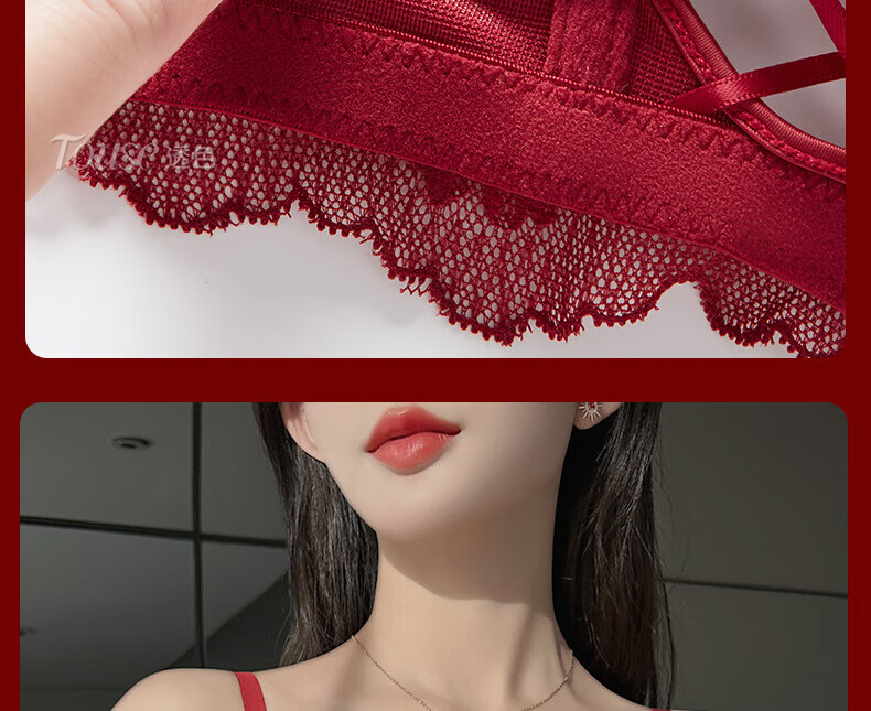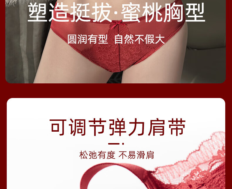Victoria's Fantasy French New Style Underwear Set Small Breast Push Up Adjustable Sexy Lace Red Bra Burgundy (Set) M 34/75 (AB Pass)