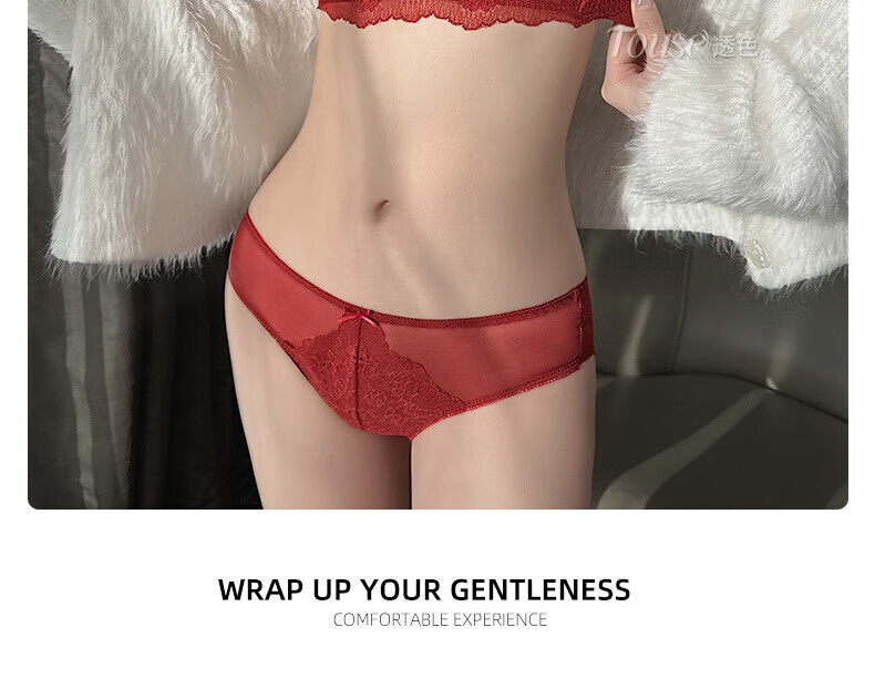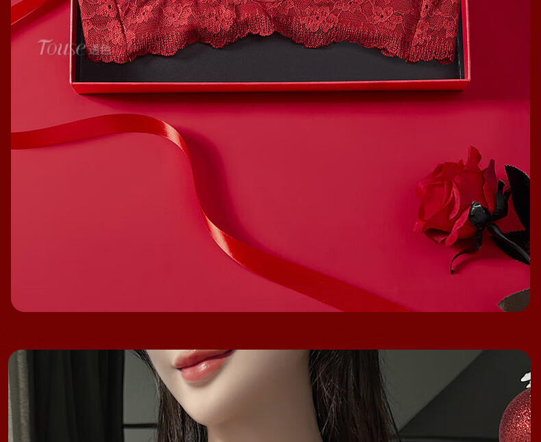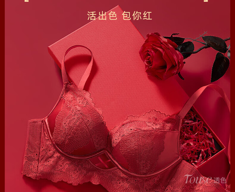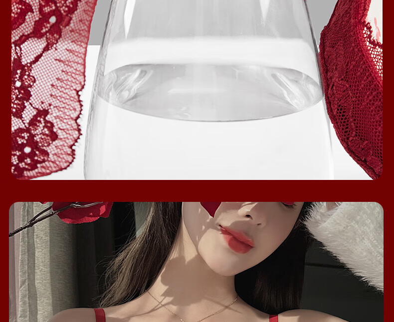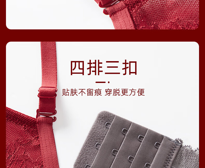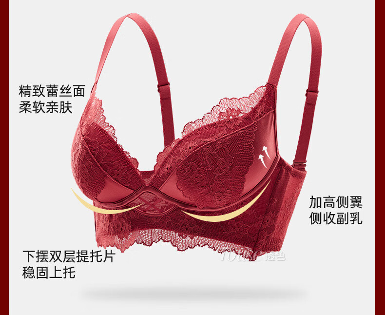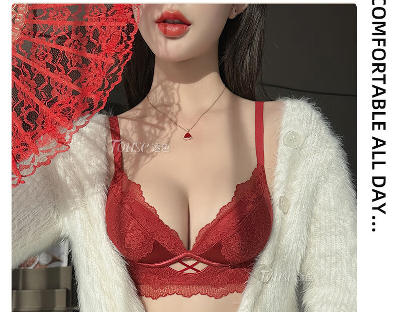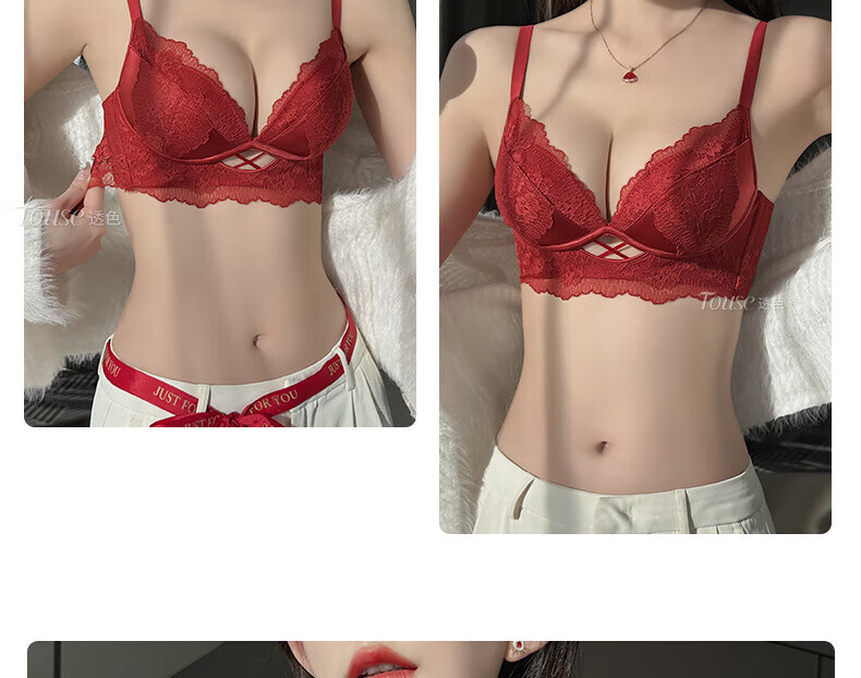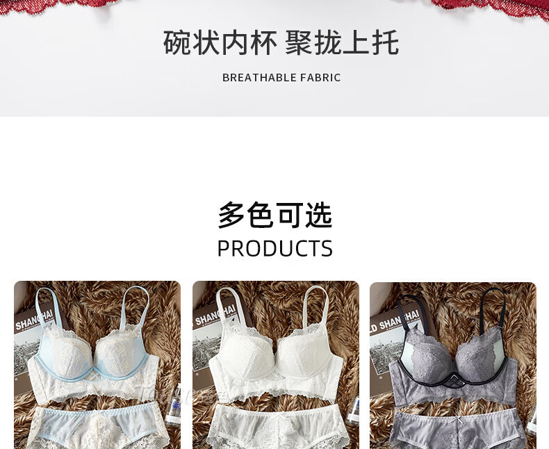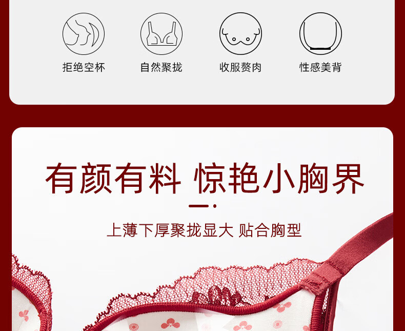 Victoria's Fantasy French New Style Underwear Set Small Breast Push Up Adjustable Sexy Lace Red Bra Burgundy (Set) M 34/75 (AB Pass)