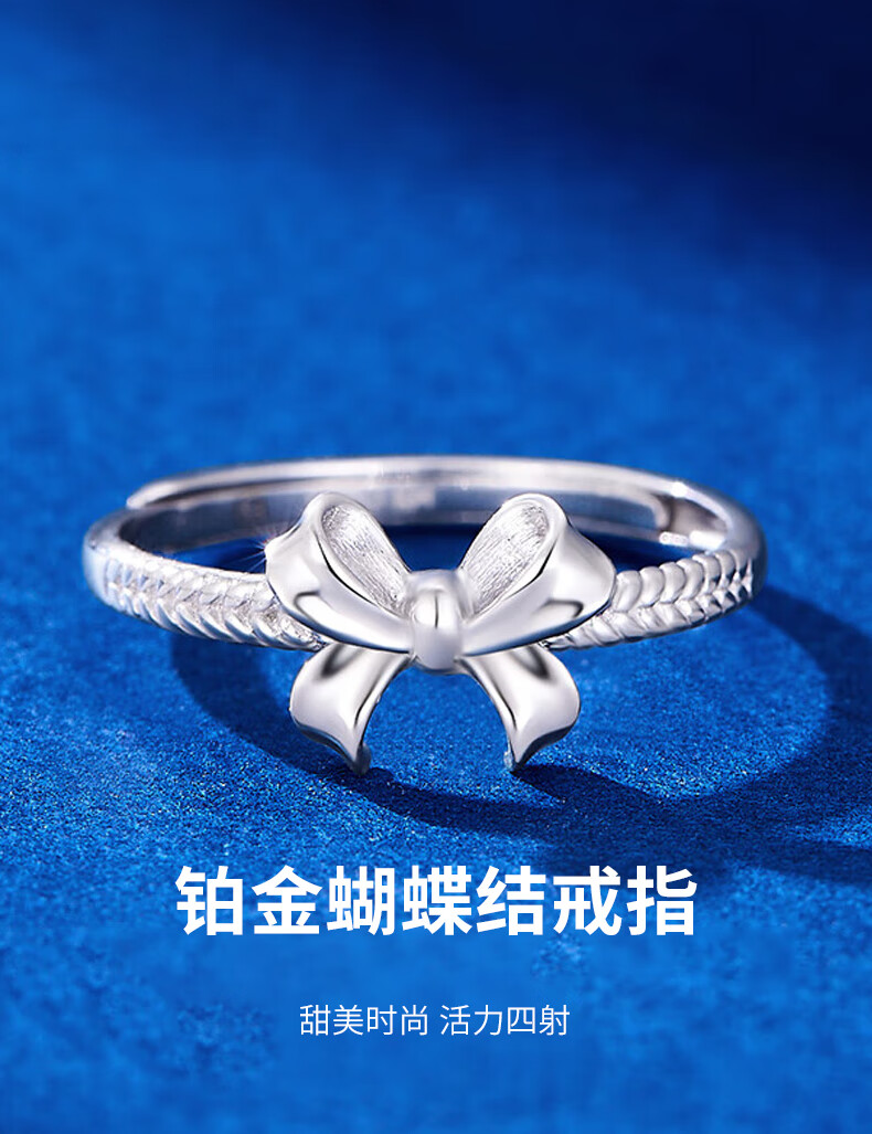 Chinese jewelry bow platinum ring for women PT950 platinum bow ring birthday gift for girlfriend and wife platinum bow ring + brand gift box gold weight about 2.6g