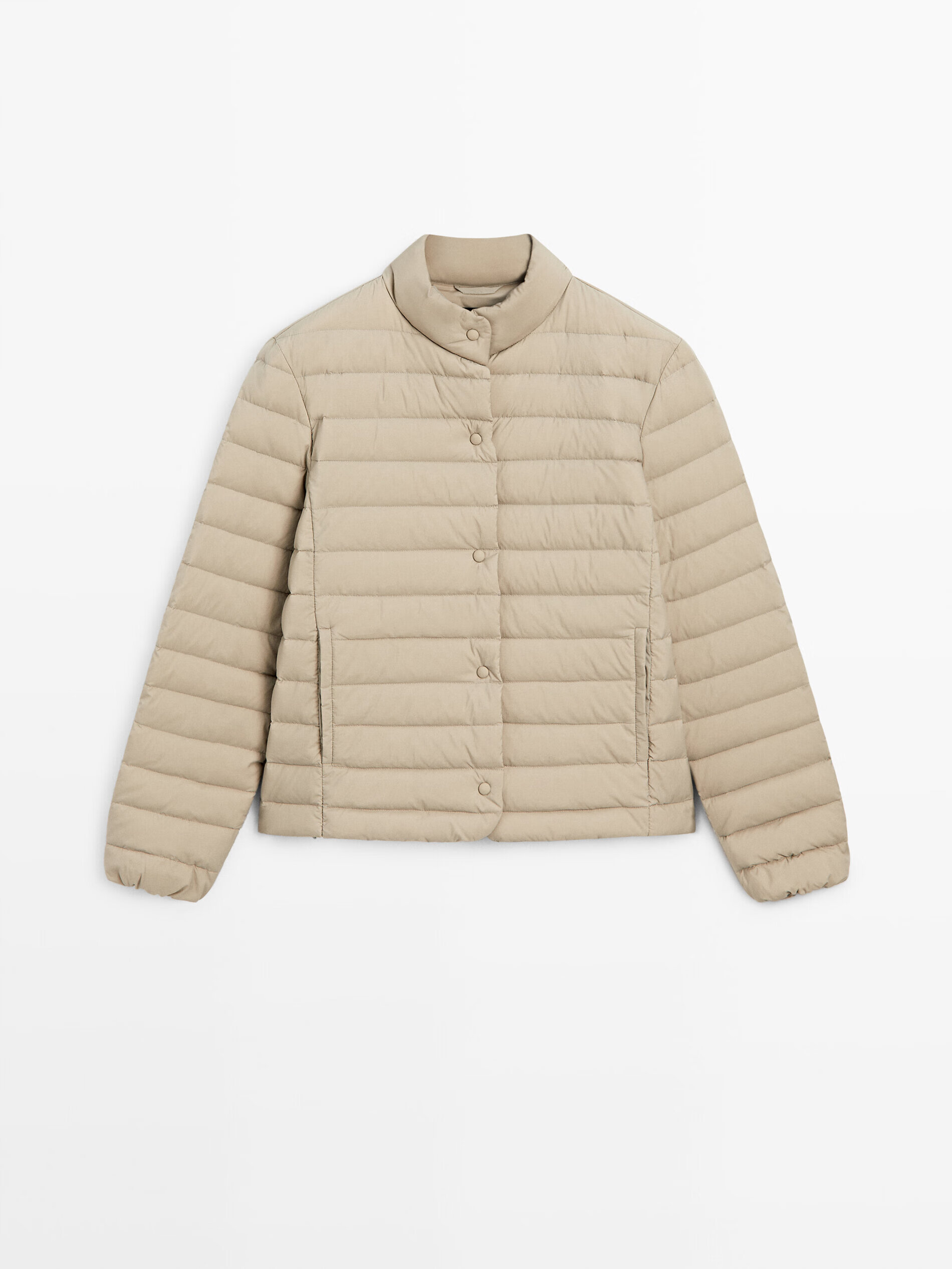 Massimo Dutti Especial Nueva Temporada 2026 Chaqueta de plumón corta con cuello levantado estilo viajero versátil y minimalista para mujer 06761303 Negro M (170/92A)