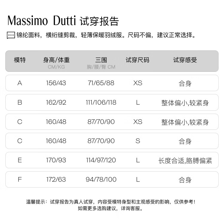 China (cm) 160-165/84-86 165-170 / 88-90 167-172 / 92-96 168-173 / 98-102 170-176 / 106-110
