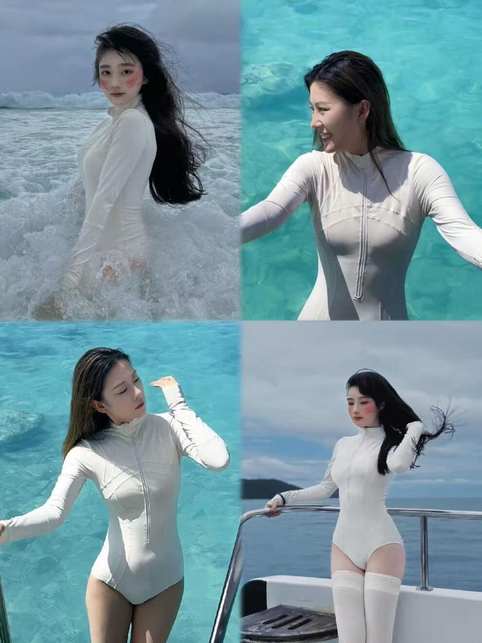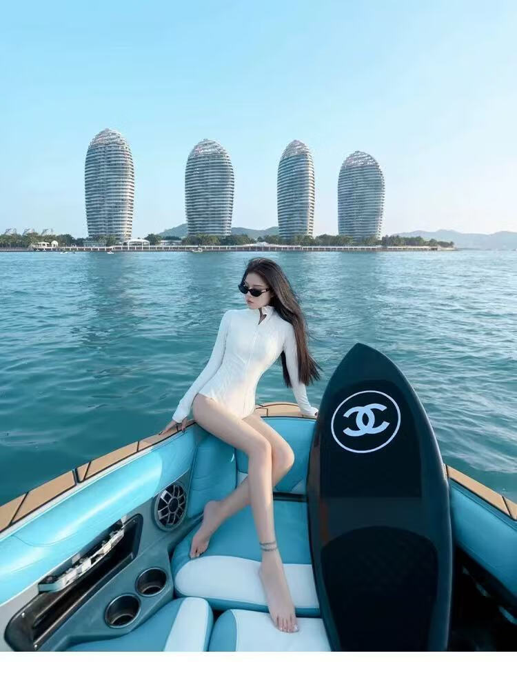 Surfing turtleneck one-piece swimsuit for women UPF50+ long-sleeved sun protection wetsuit quick-drying jellyfish 2025 new swimming albumin+swimming goggles+ear plugs and nose clip M