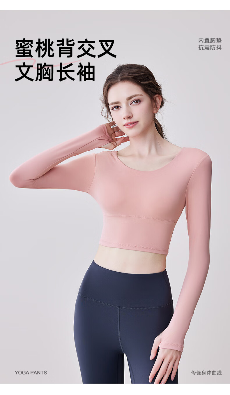 With chest pad, yoga clothing set, professional Pilates training long-sleeved morning running sports fitness top autumn and winter long-sleeved top star black M recommended 95-105Jin Jin equals 0.5 kg