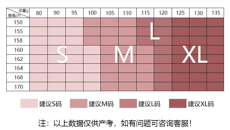 China (cm) 160-165/84-86 165-170 / 88-90 167-172 / 92-96 168-173 / 98-102 170-176 / 106-110