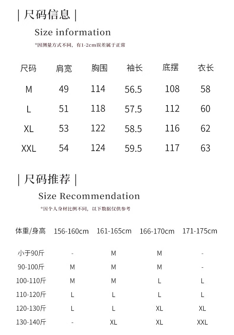China (cm) 160-165/84-86 165-170 / 88-90 167-172 / 92-96 168-173 / 98-102 170-176 / 106-110