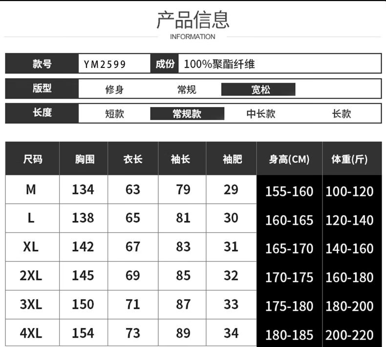China (cm) 165 / 88-90 170 / 96-98 175 / 108-110 180 / 118-122 185 / 126-130
