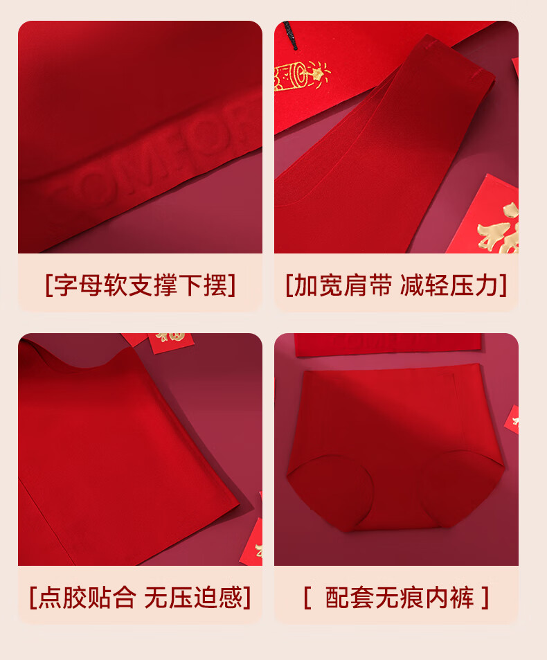 Catman plus size fat MM underwear set for the year of birth, big breasts appear small without steel rings, bride wedding big red bra 1 set - bra + underwear Lucky Red 2XL Recommended BCD cup/155-170Jin Jin equals 0.5 kg