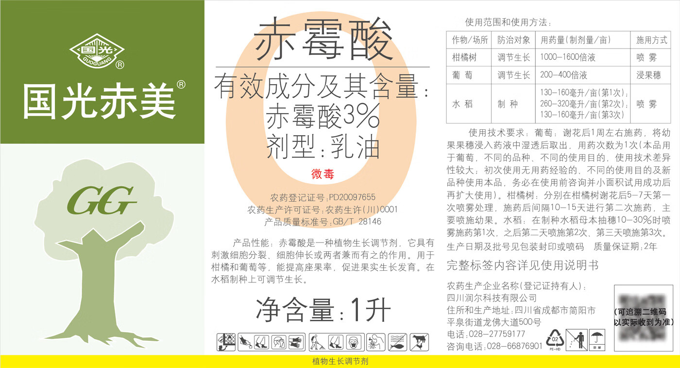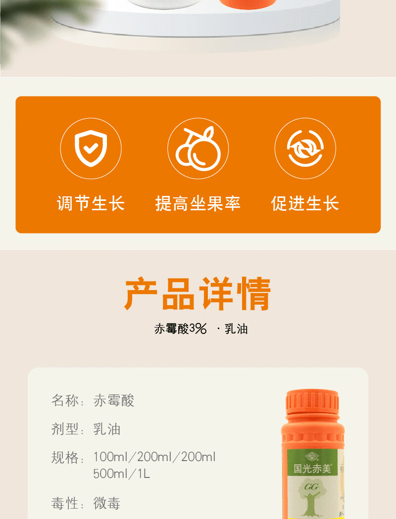 Guoguang Chimei 3% gibberellic acid gibberellin citrus improves fruit setting rate and promotes growth cell growth regulator genuine 100ml