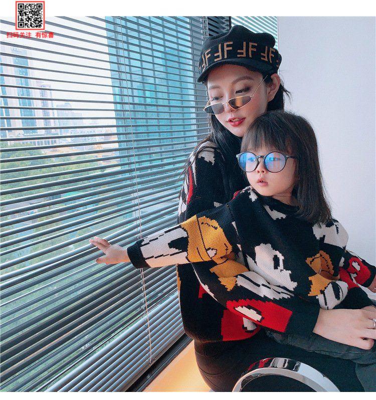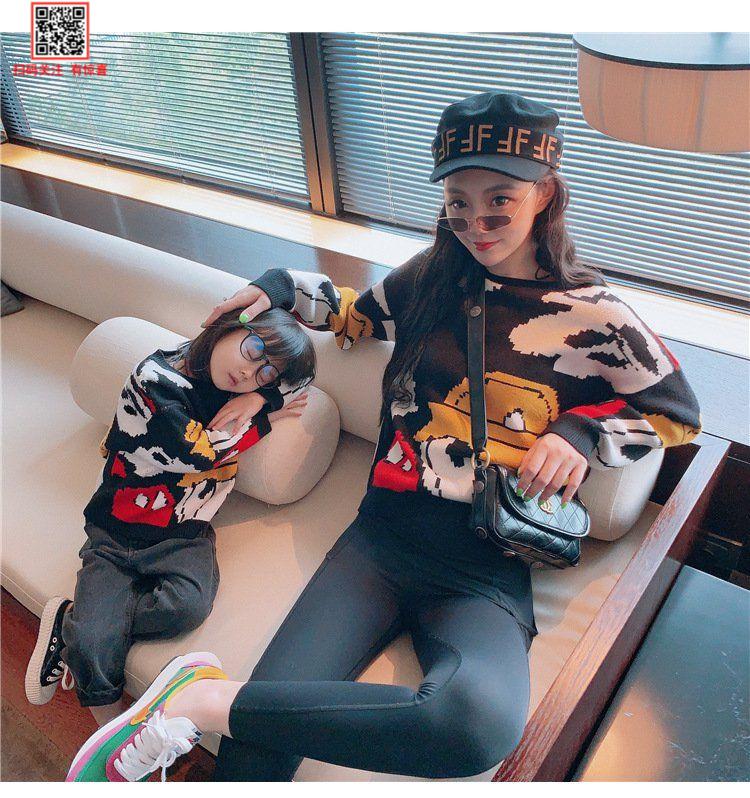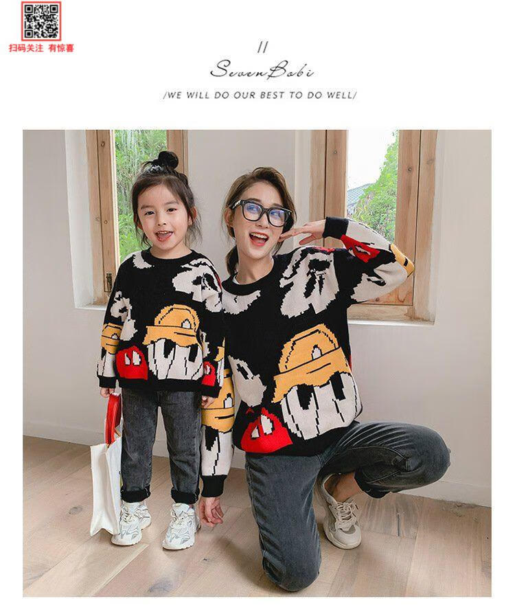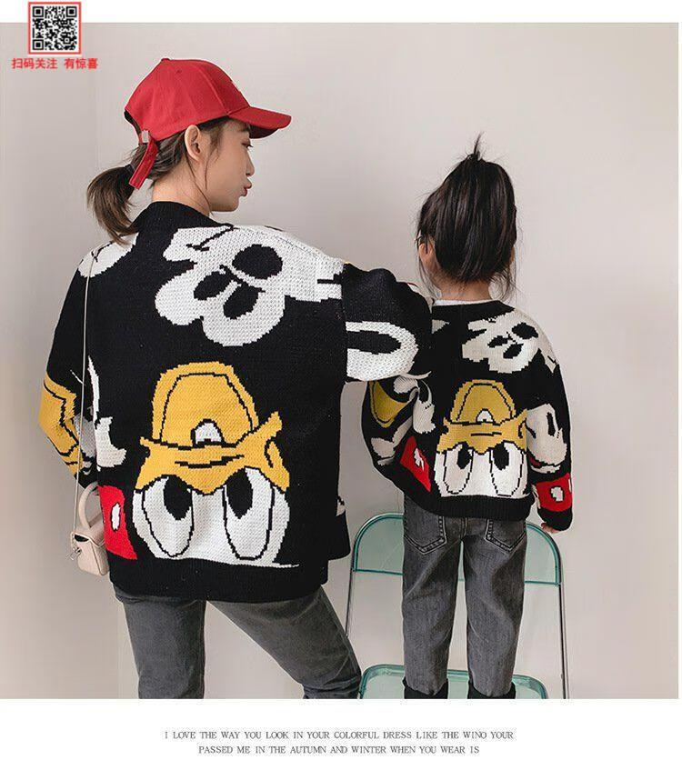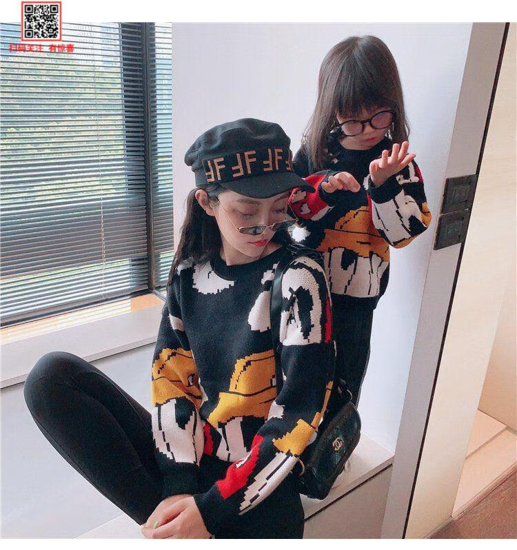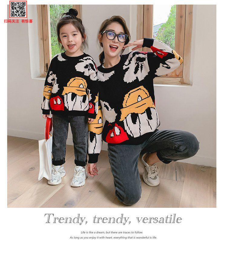 G.duck Internet celebrity parent-child clothing new autumn and winter sweater mother-child mother-daughter clothing Western fashionable sweater Internet celebrity jacket trend round neck 165 adult S