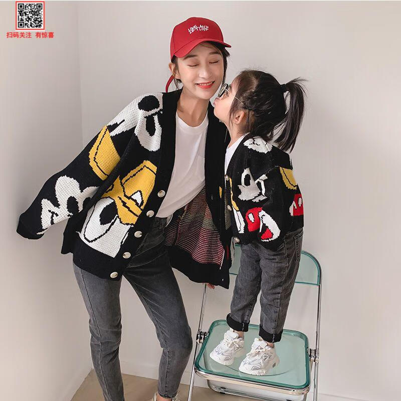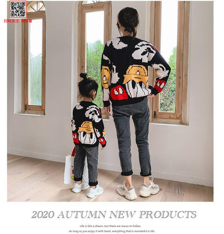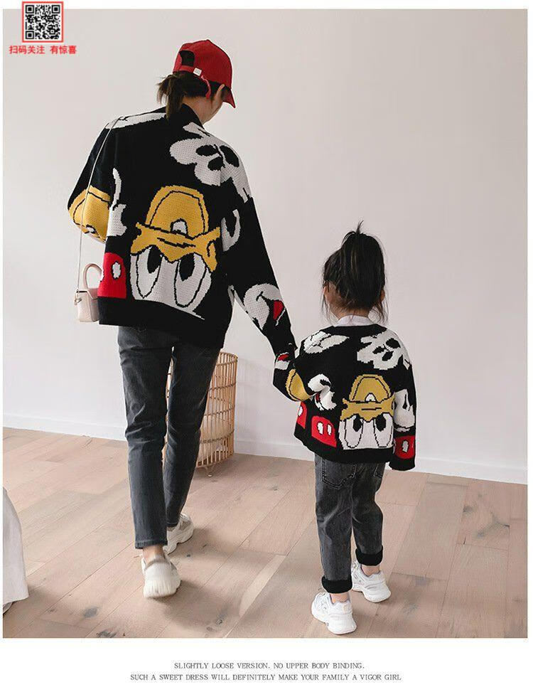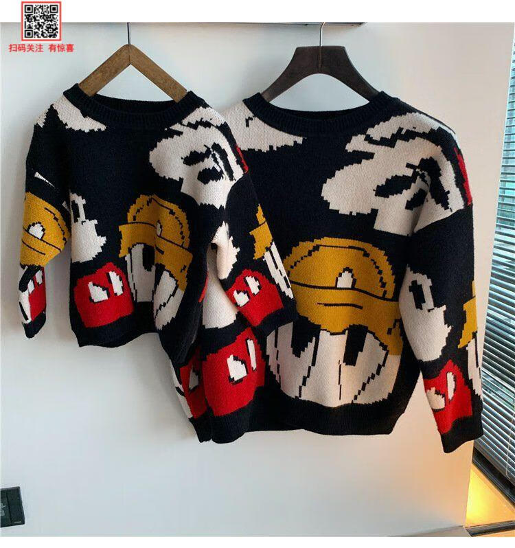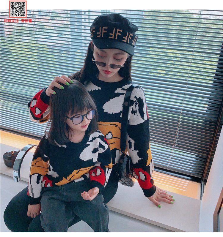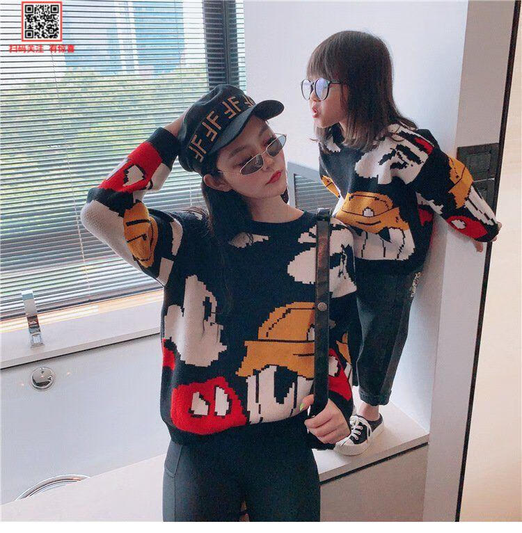 G.duck Internet celebrity parent-child clothing new autumn and winter sweater mother-child mother-daughter clothing Western fashionable sweater Internet celebrity jacket trend round neck 165 adult S