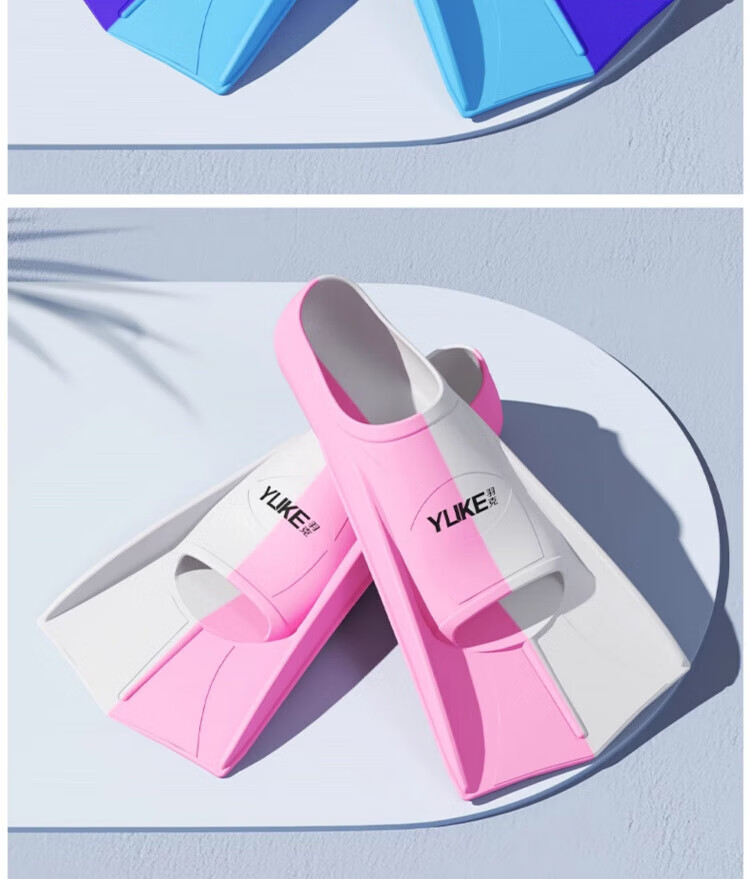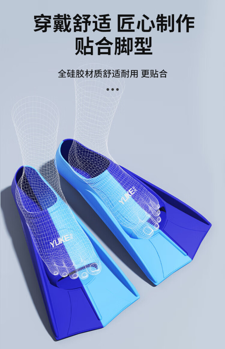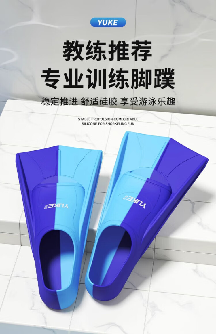 Zailu swimming fins for men and women, special children's short fins for freestyle swimming, breaststroke diving training silicone equipment, dark blue two-color + earplugs, nose clip and portable net bag XXS XXS