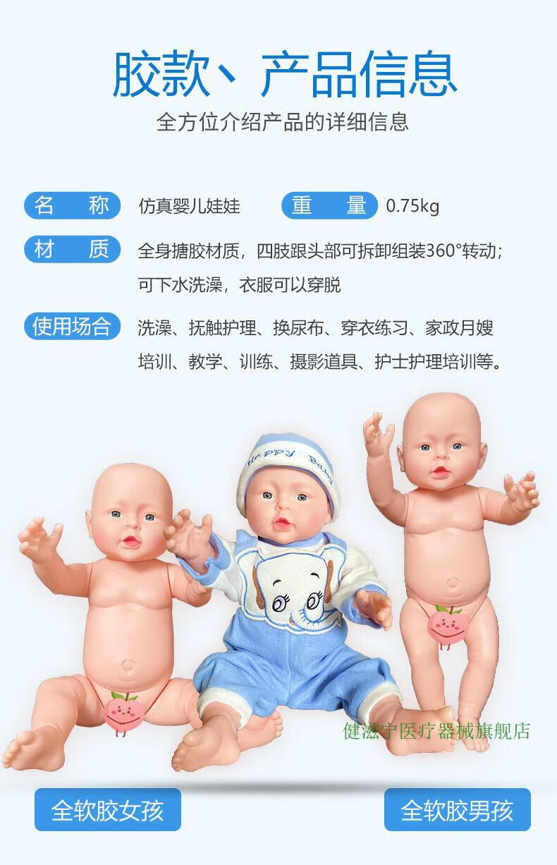 Universal housekeeping nanny care training doll teaching model massage, touch and fuck silicone baby simulation doll 52cm full plastic girl pink overalls silent model