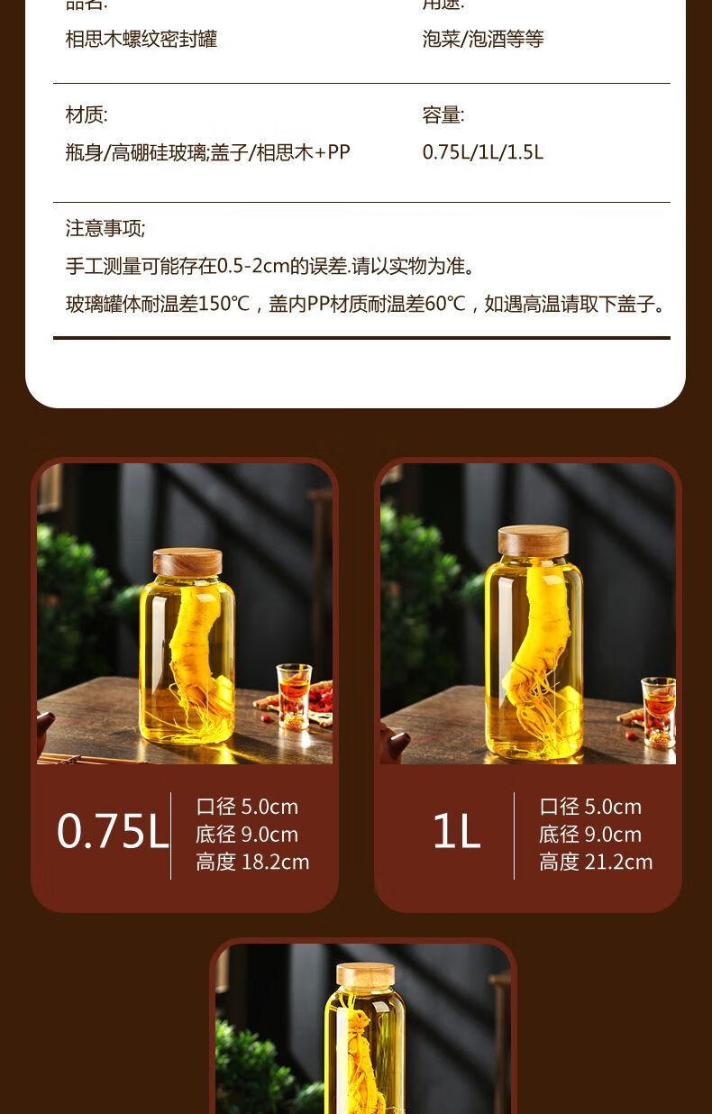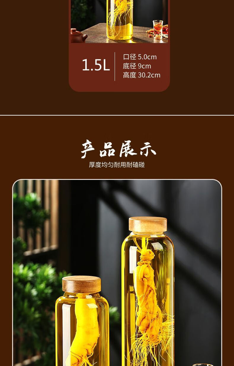 High-end medicinal wine slender wine storage bottle high borosilicate glass household ginseng wine bottle special sealed wine tank for wine 1500ml wine bottle one pack