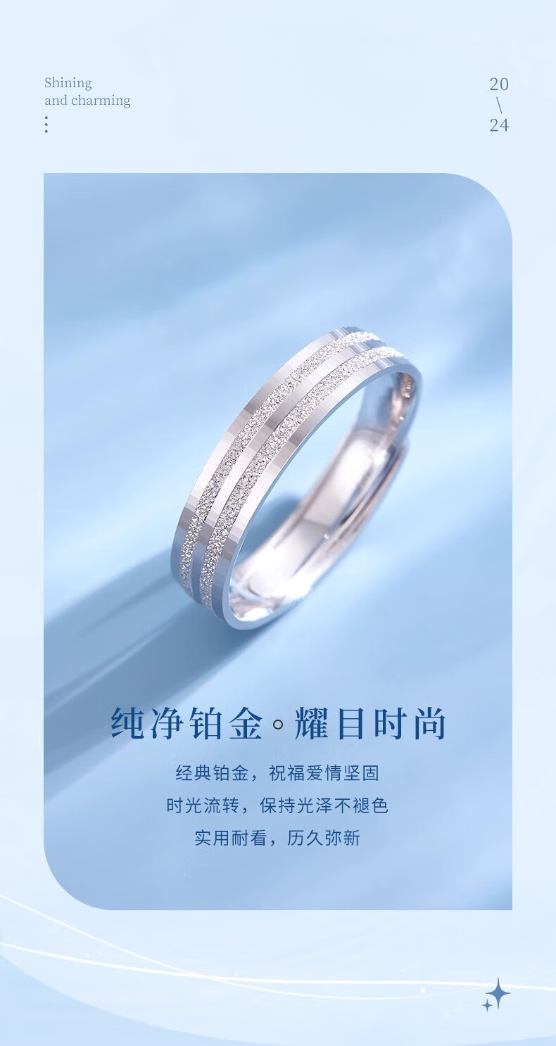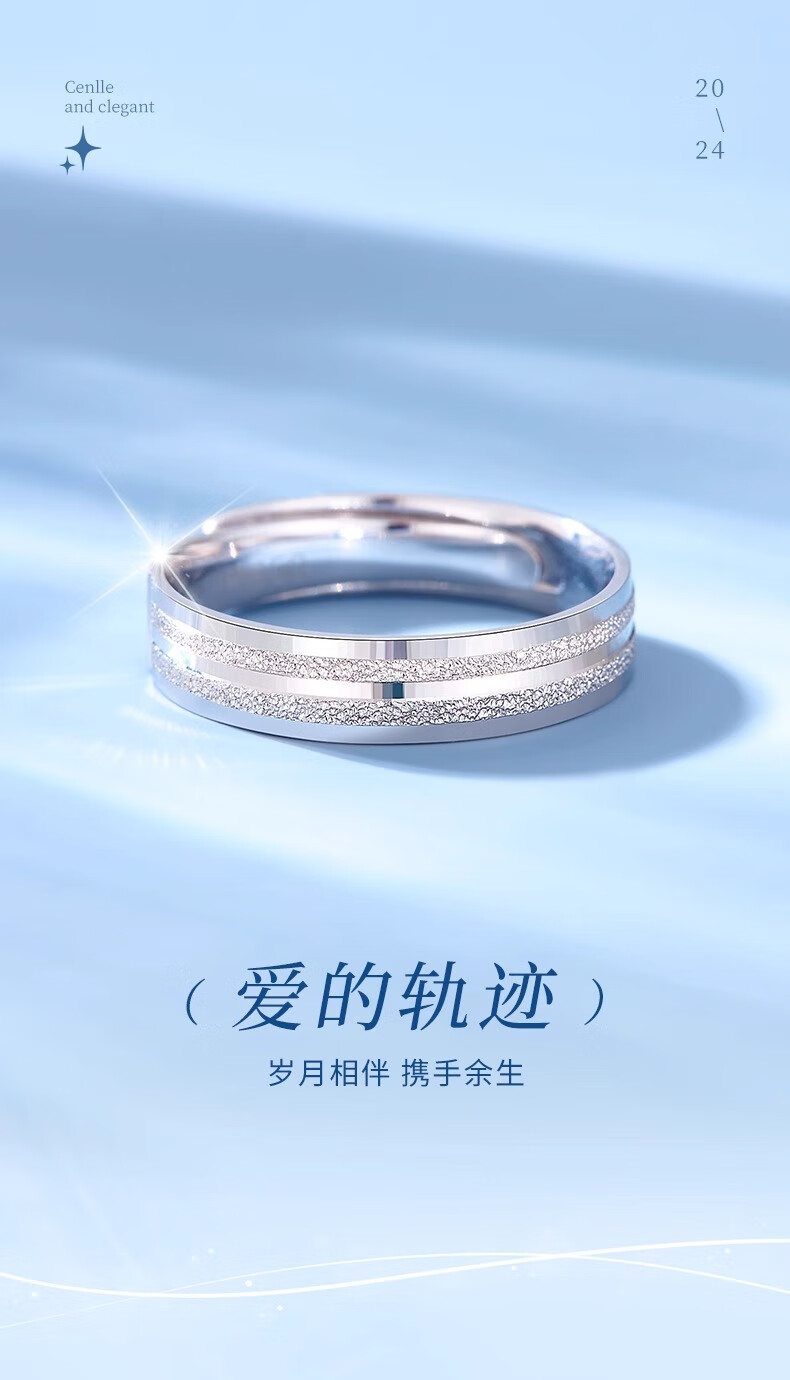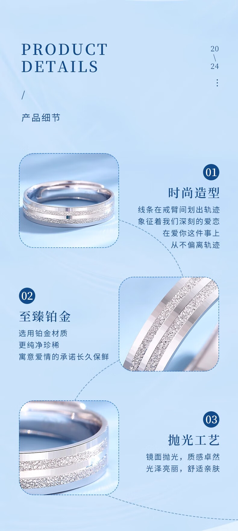 Lao Fengxiang Track PT950 platinum ring for men and women, 2025 new platinum ring for anniversary gift to girlfriend, platinum ring, female ring, about -4.1g