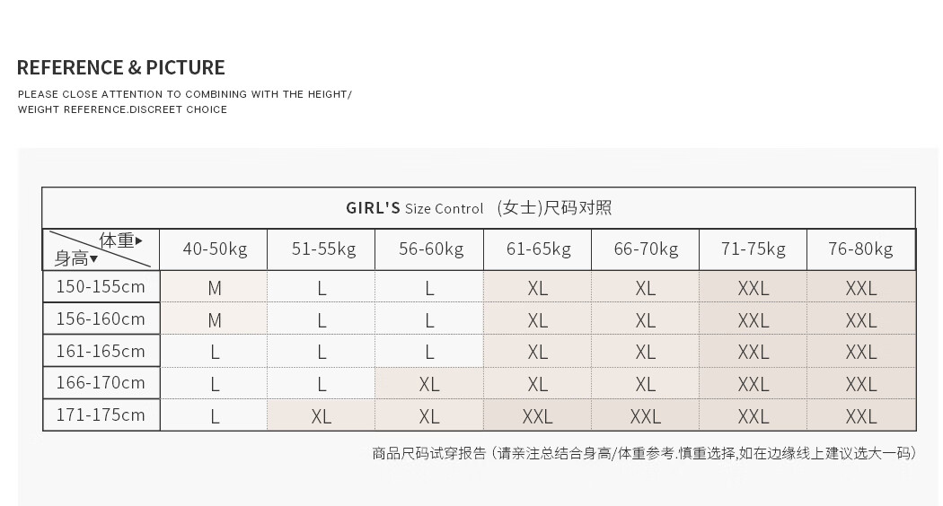 China (cm) 160-165/84-86 165-170 / 88-90 167-172 / 92-96 168-173 / 98-102 170-176 / 106-110