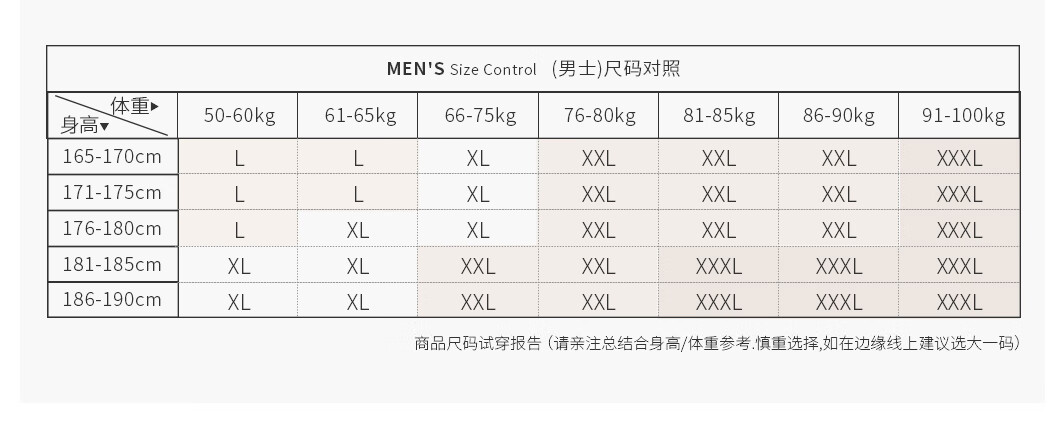 China (cm) 165 / 88-90 170 / 96-98 175 / 108-110 180 / 118-122 185 / 126-130