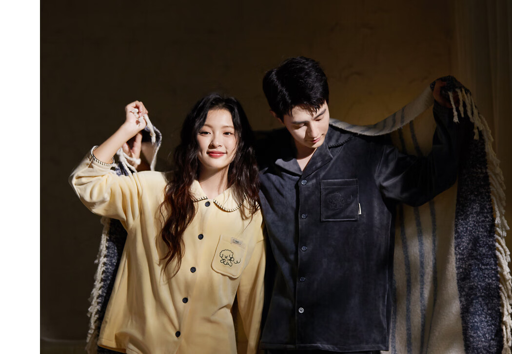 Mrs. Slee Sleep TIGHT couple pajamas for women in autumn and winter, island velvet thin velvet, warm, high-quality, light and luxurious, men can wear outside home clothes in winter LYR1212-women's XL